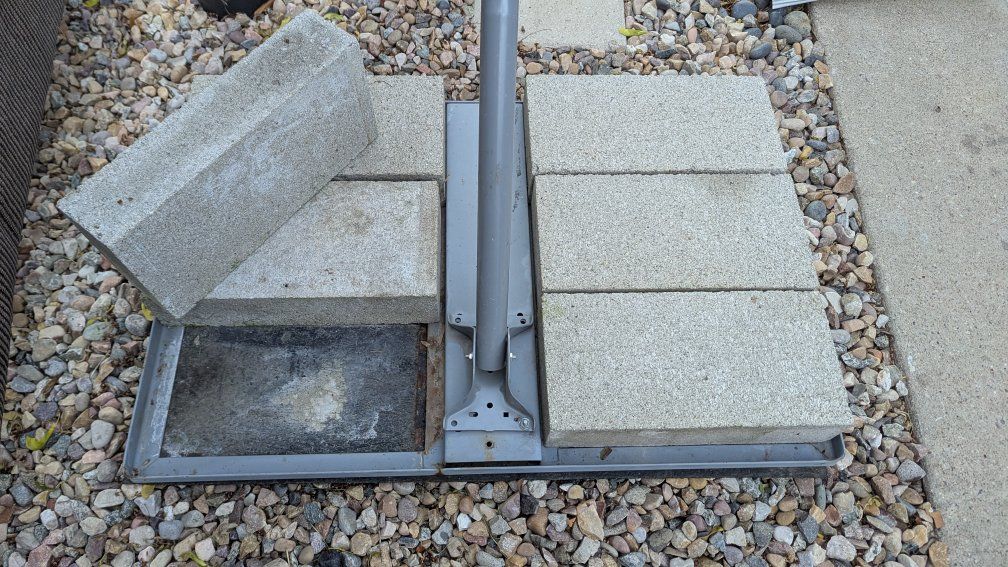 VenmoUsed non-penetrating rooftop j Mount for antennas and satellite dishes. includes rubber protective mat and six cinder blocks to weigh it down. in great shape, just needs a couple bolts