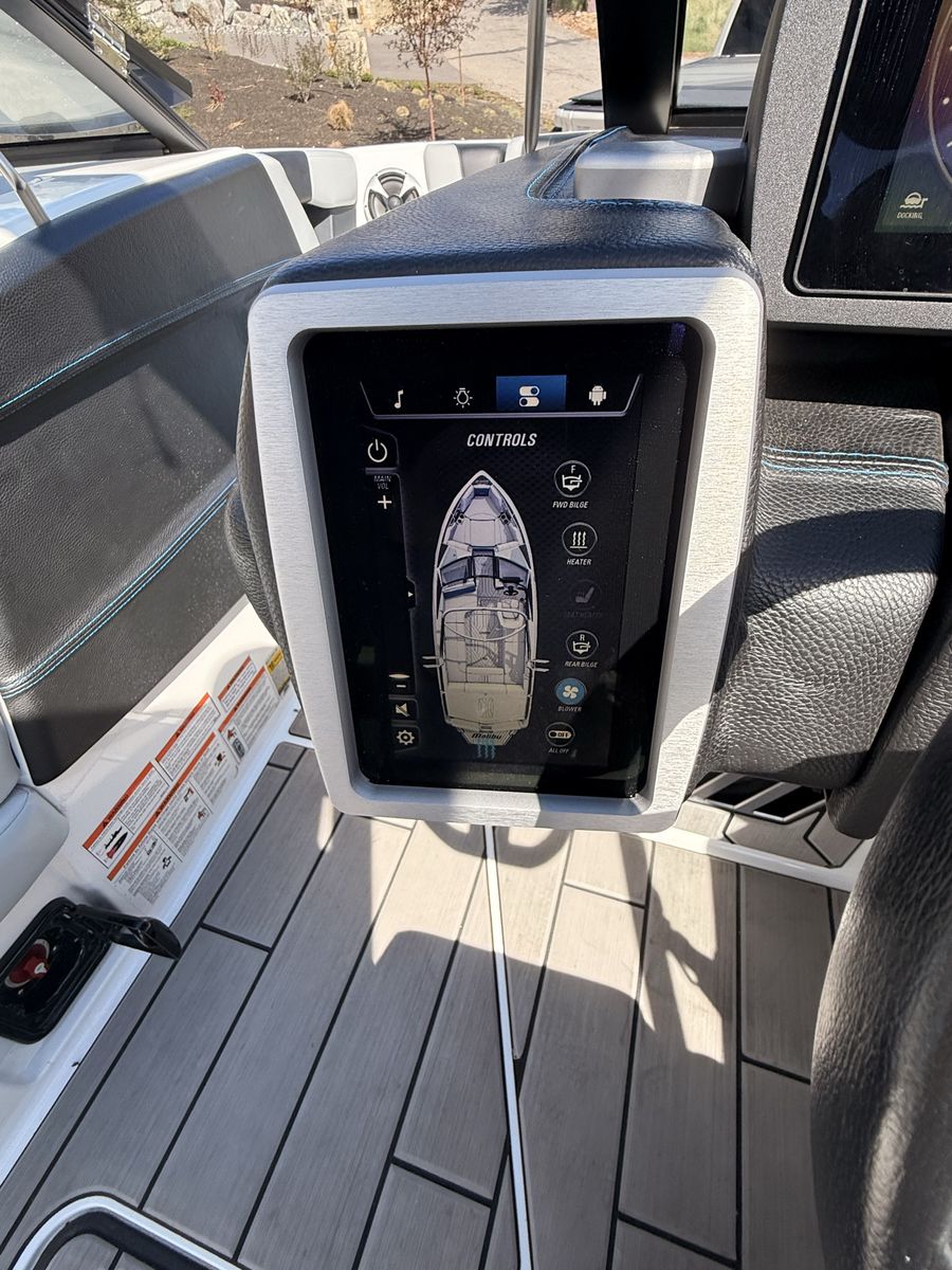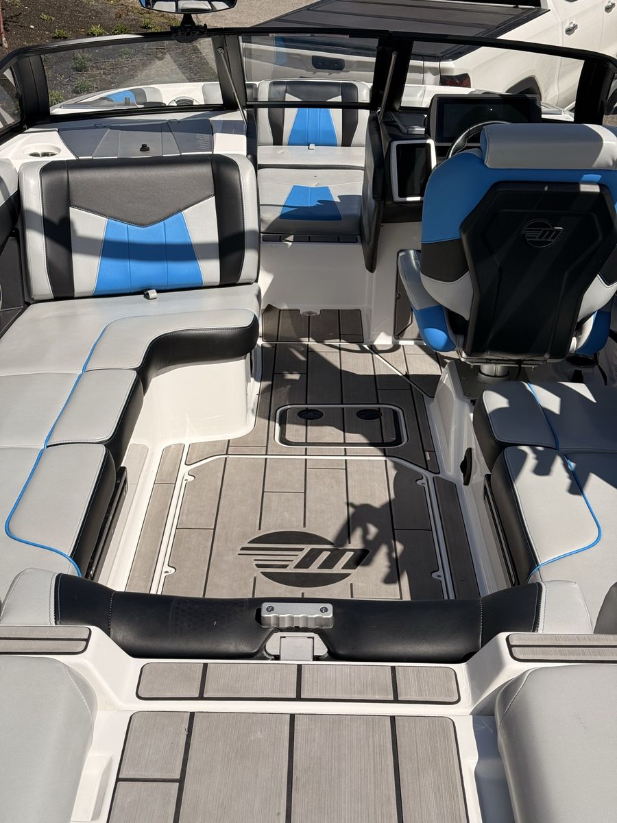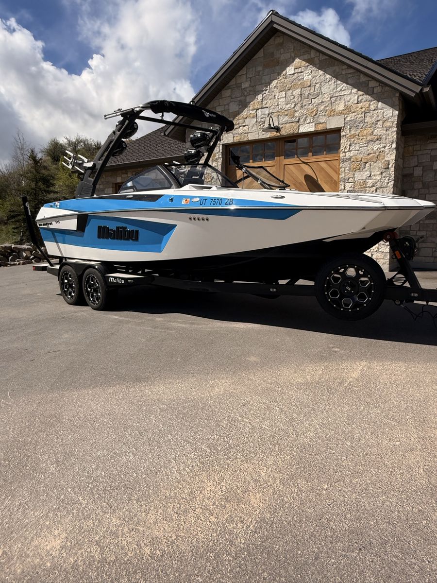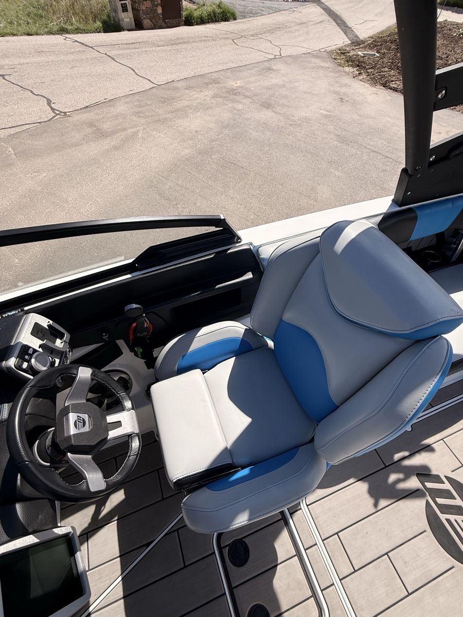 M6Di surf boat. Stored year round in climate control. Up on all service. Auto everything. Extra ballasts. Wave adjust and audio wrist control. Extra props as part of “weekend wrecker kit”. Trailer included.