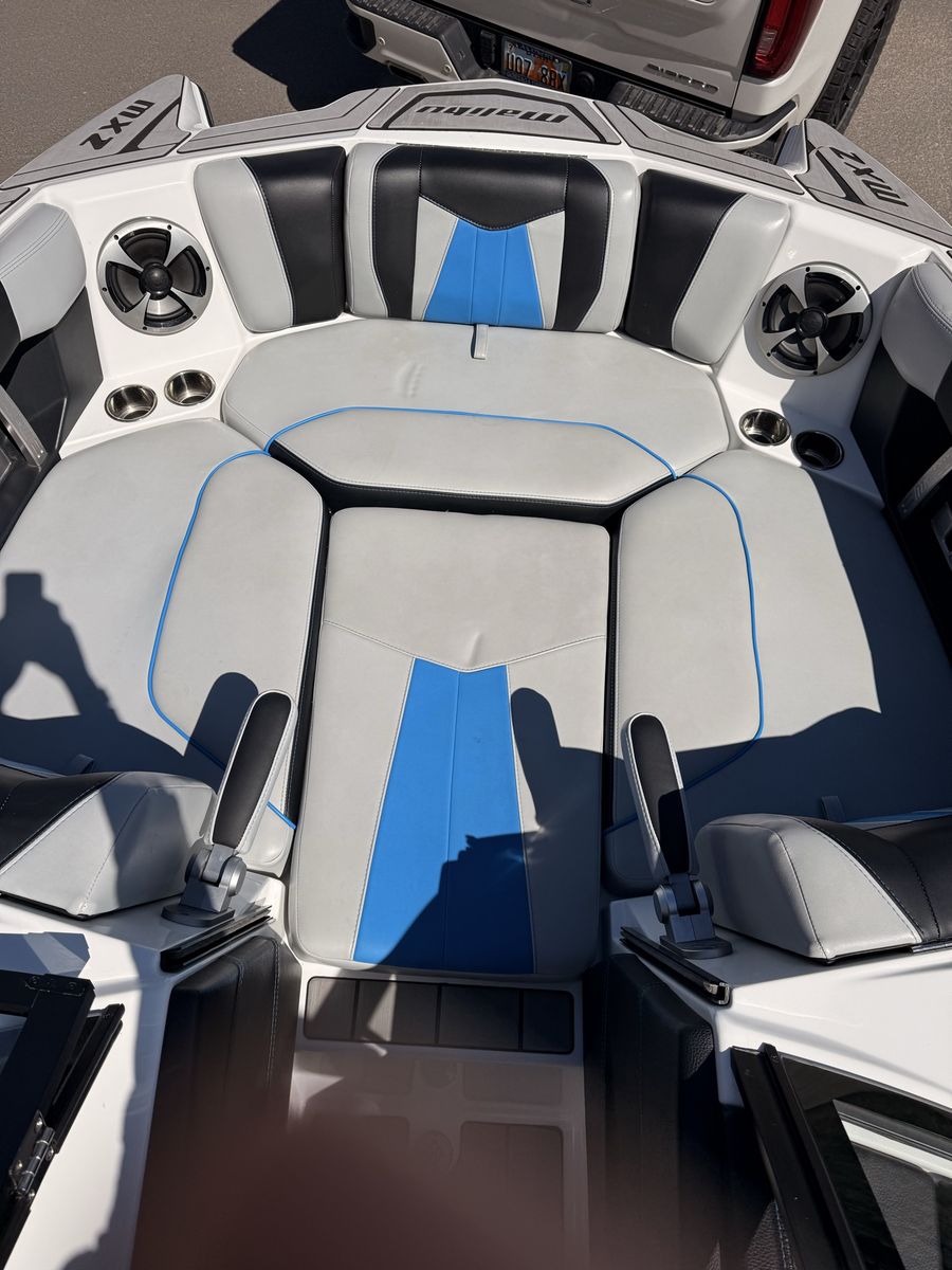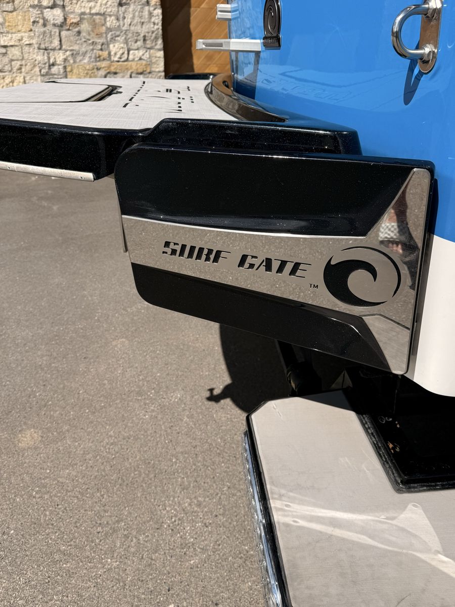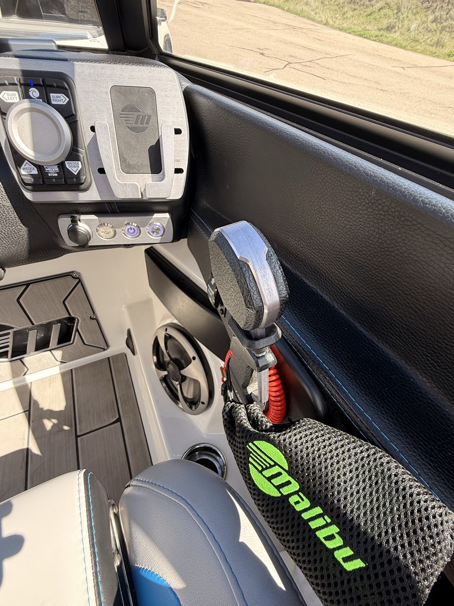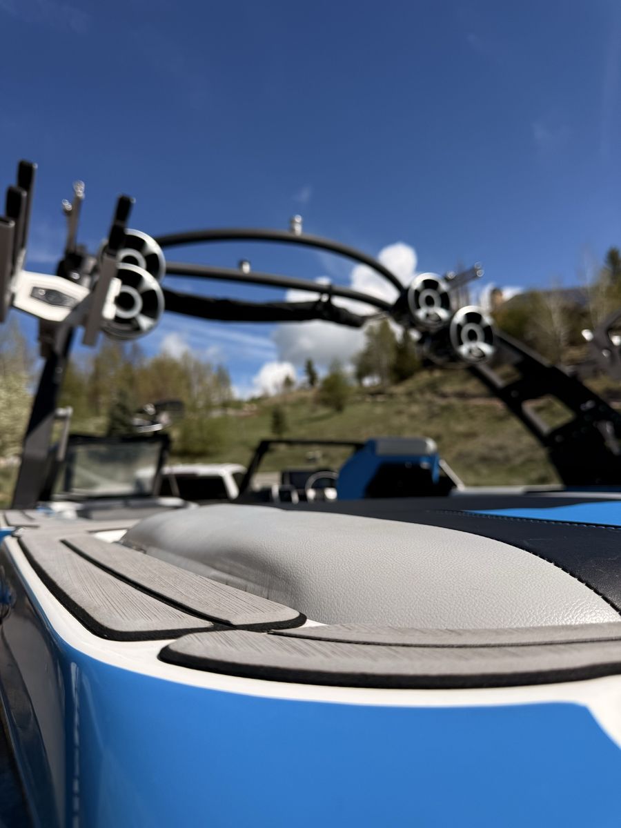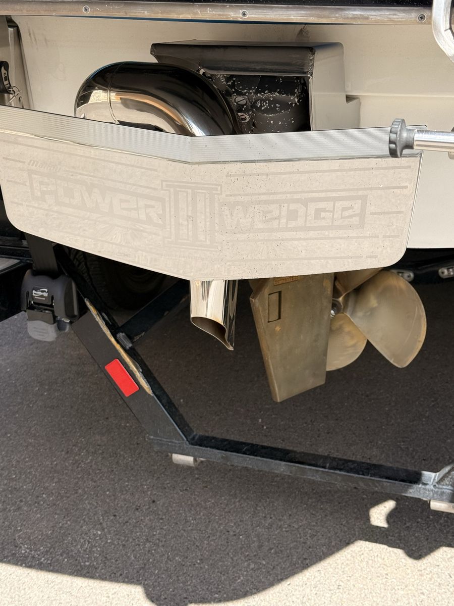 M6Di surf boat. Stored year round in climate control. Up on all service. Auto everything. Extra ballasts. Wave adjust and audio wrist control. Extra props as part of “weekend wrecker kit”. Trailer included.