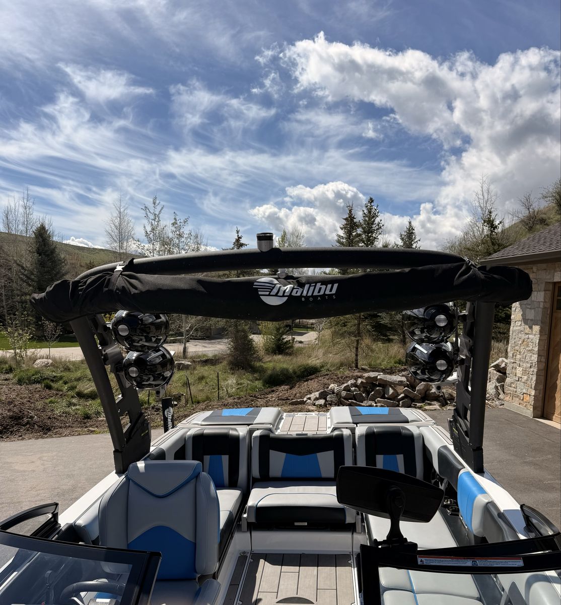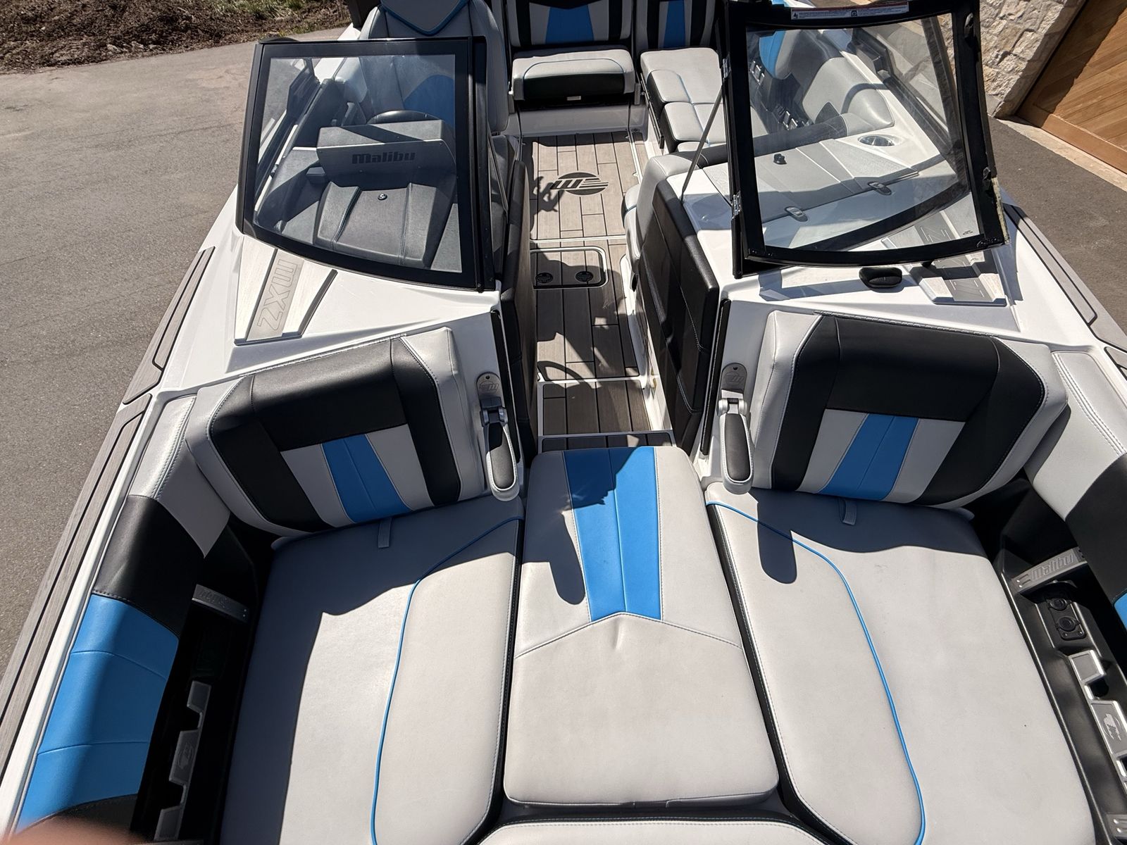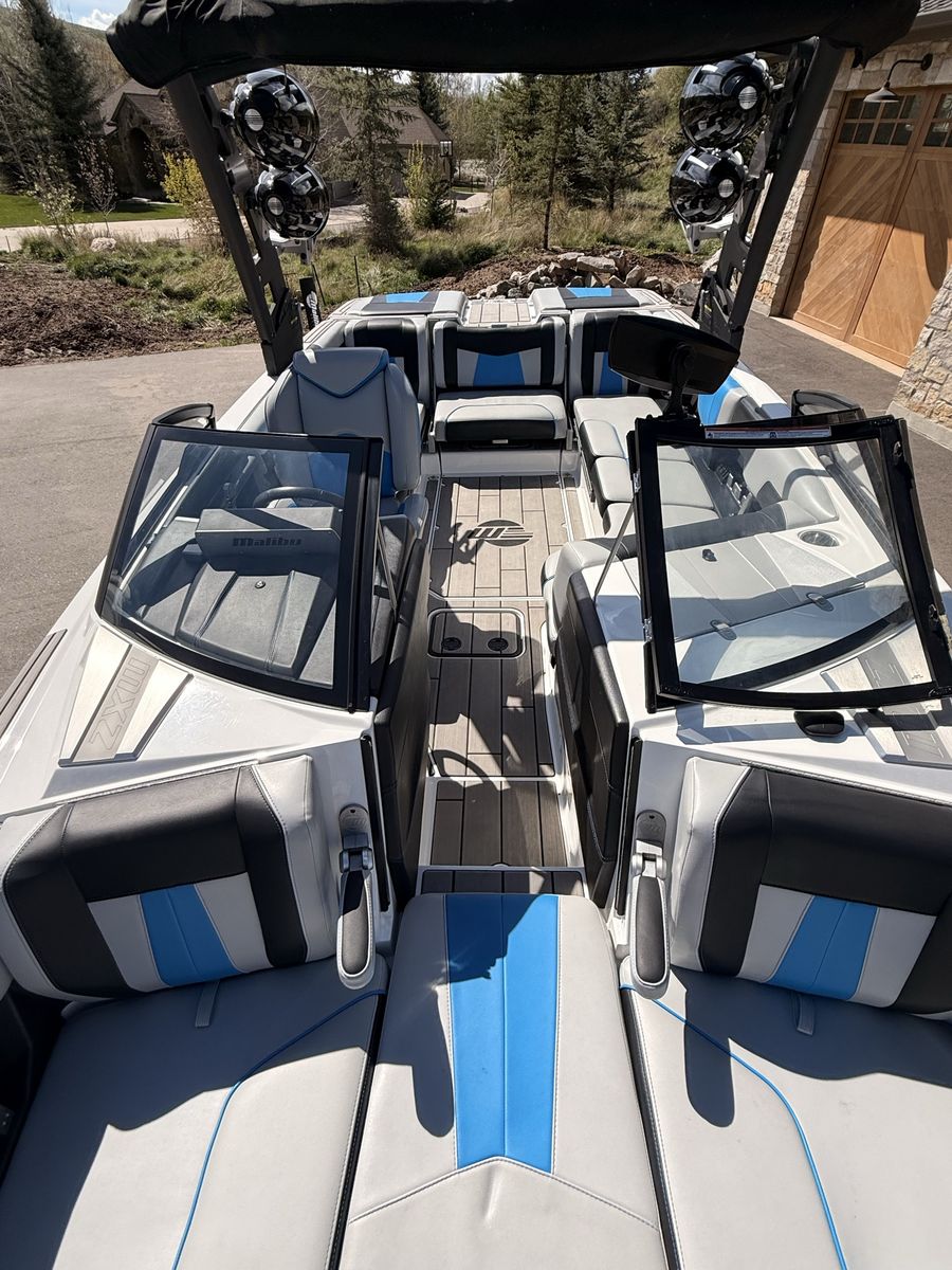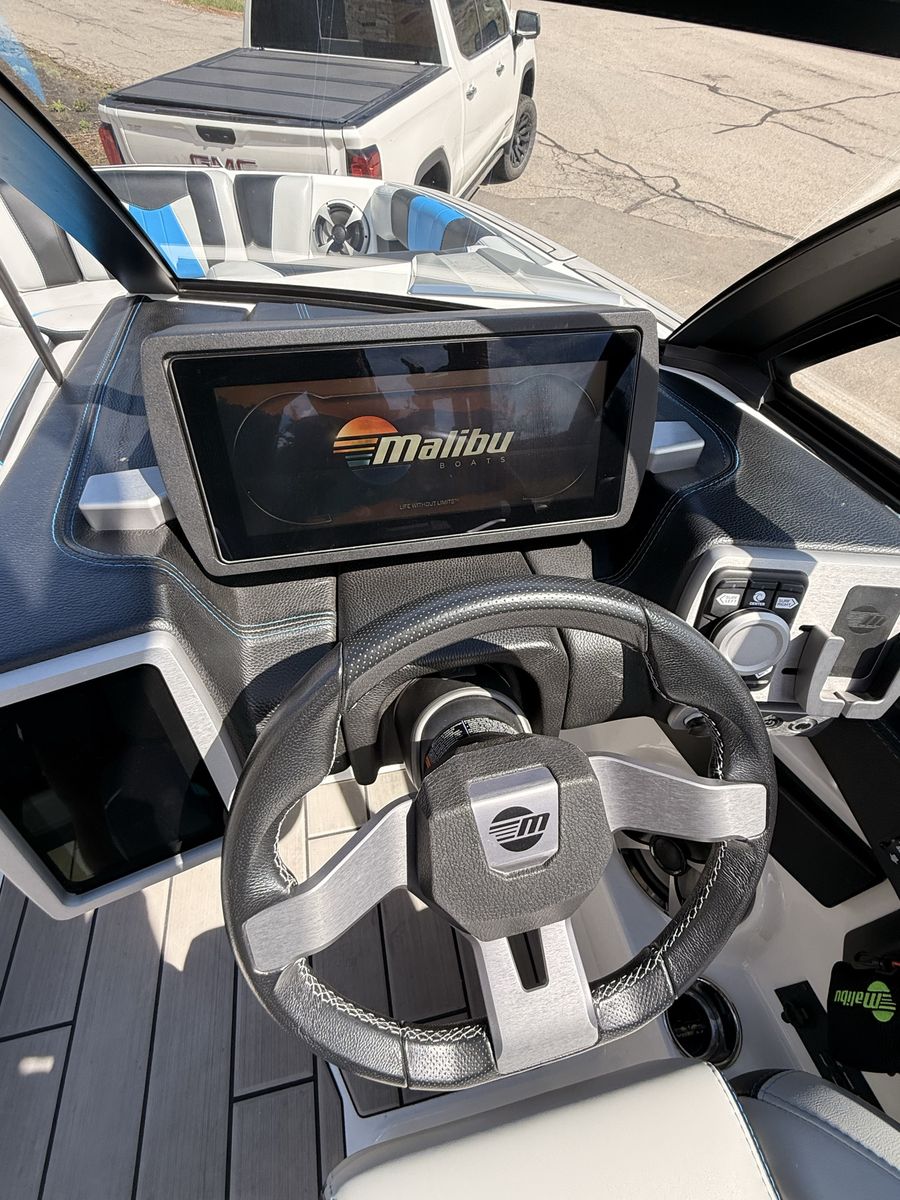 M6Di surf boat. Stored year round in climate control. Up on all service. Auto everything. Extra ballasts. Wave adjust and audio wrist control. Extra props as part of “weekend wrecker kit”. Trailer included.