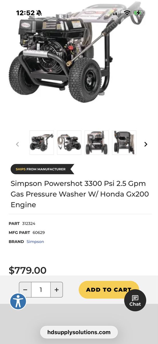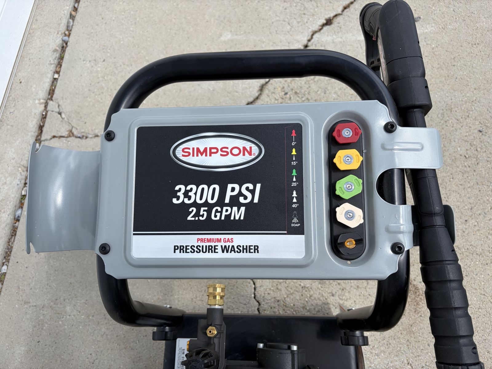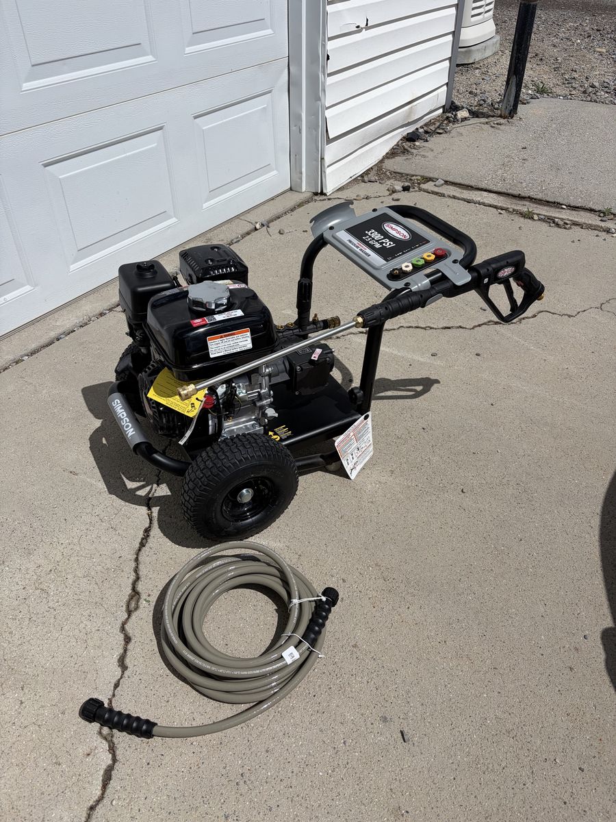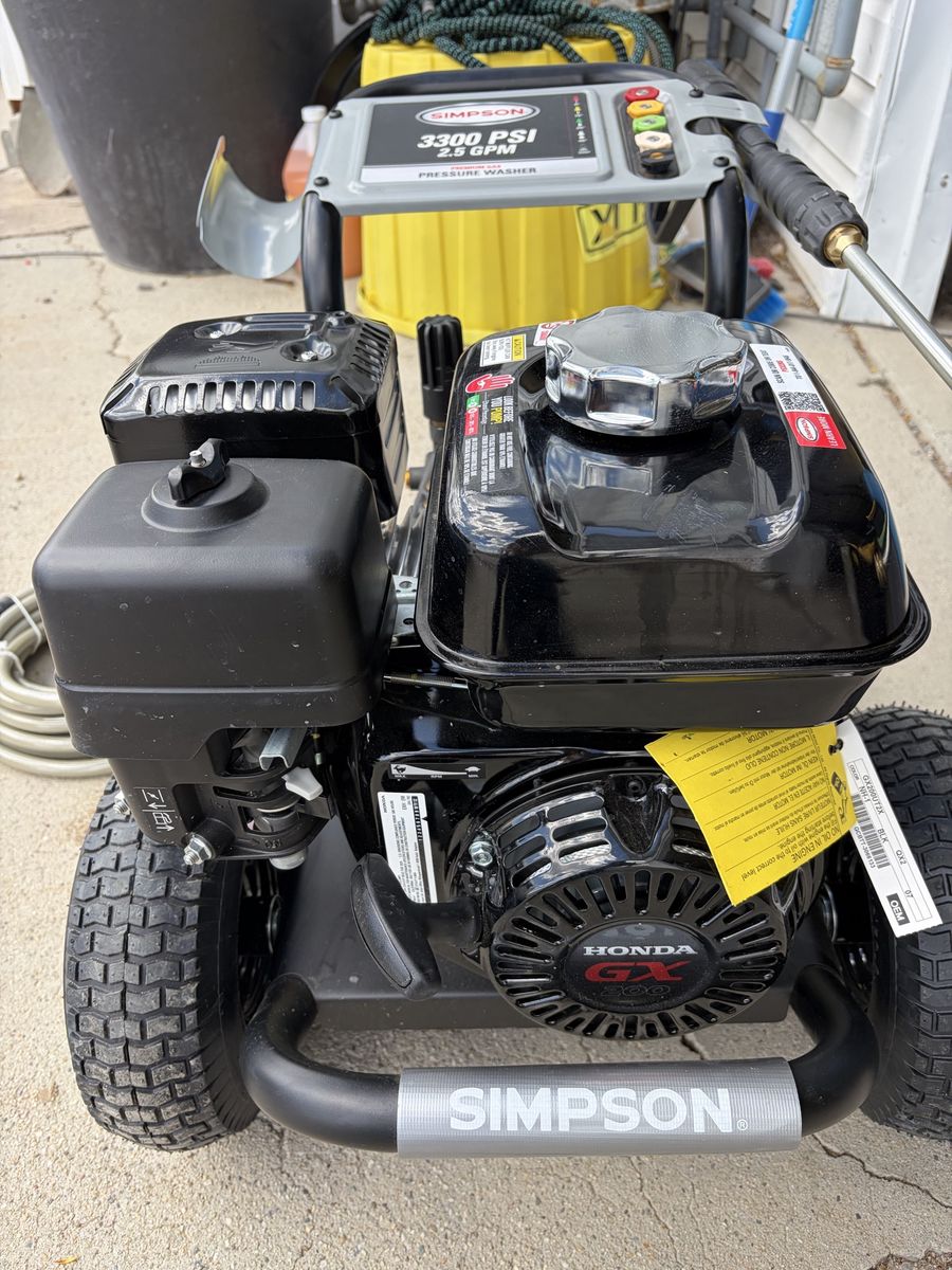 ApplePaySimpson Powershot 3300 psi, 2.5 Gpm Gas pressure washer. Out of the box, only started twice, still has new tags on washer and hose. Hose and washer handle never used. Was going to start a business with it, but fell through. Brand new, paid $780 two months ago. Asking $700 obo.