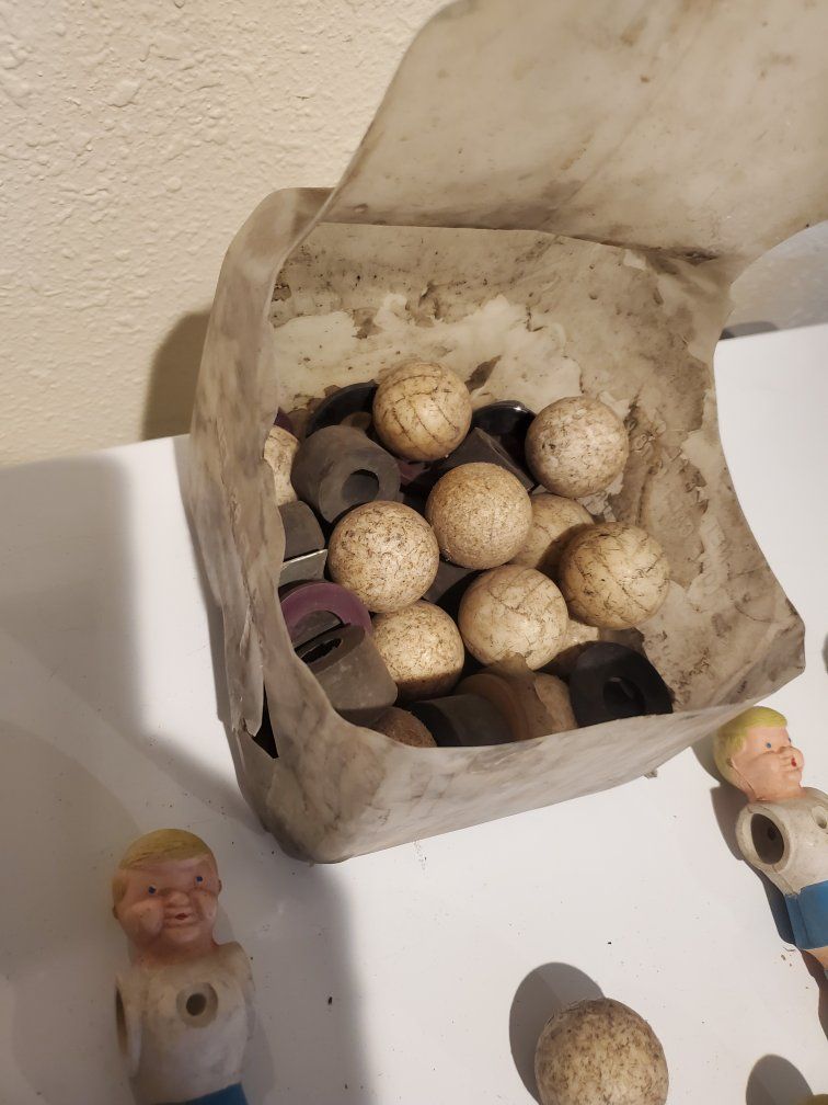 VenmoLot of Trophy Soccer foosball men. 14 total men, 13 balls, bumpers, spacers, washers.