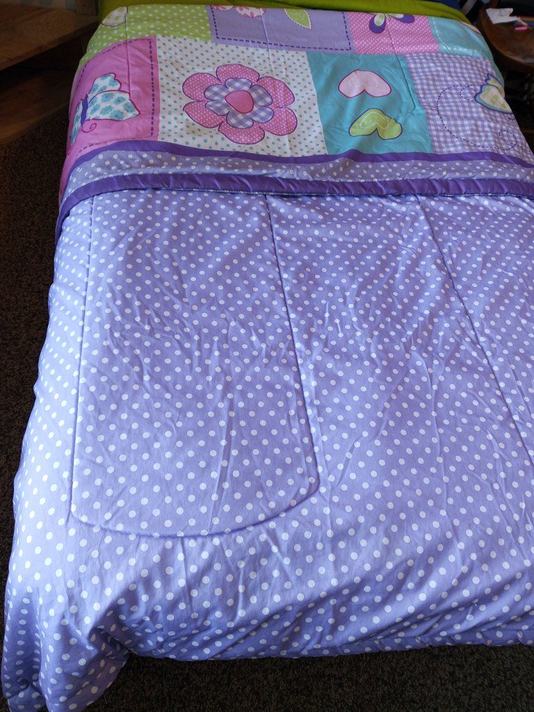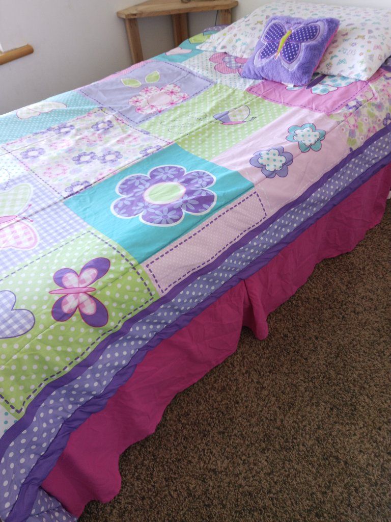 Fun purple and bright colors twin-size bed set featuring butterflies and flowers is perfect for girl or tween bedroom!