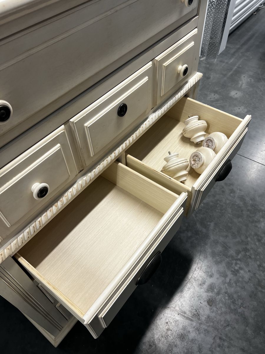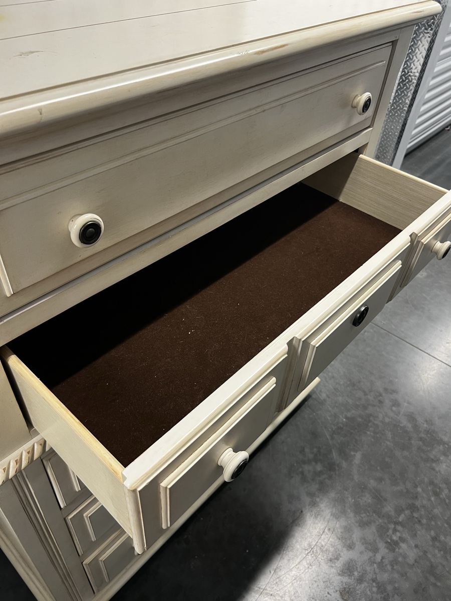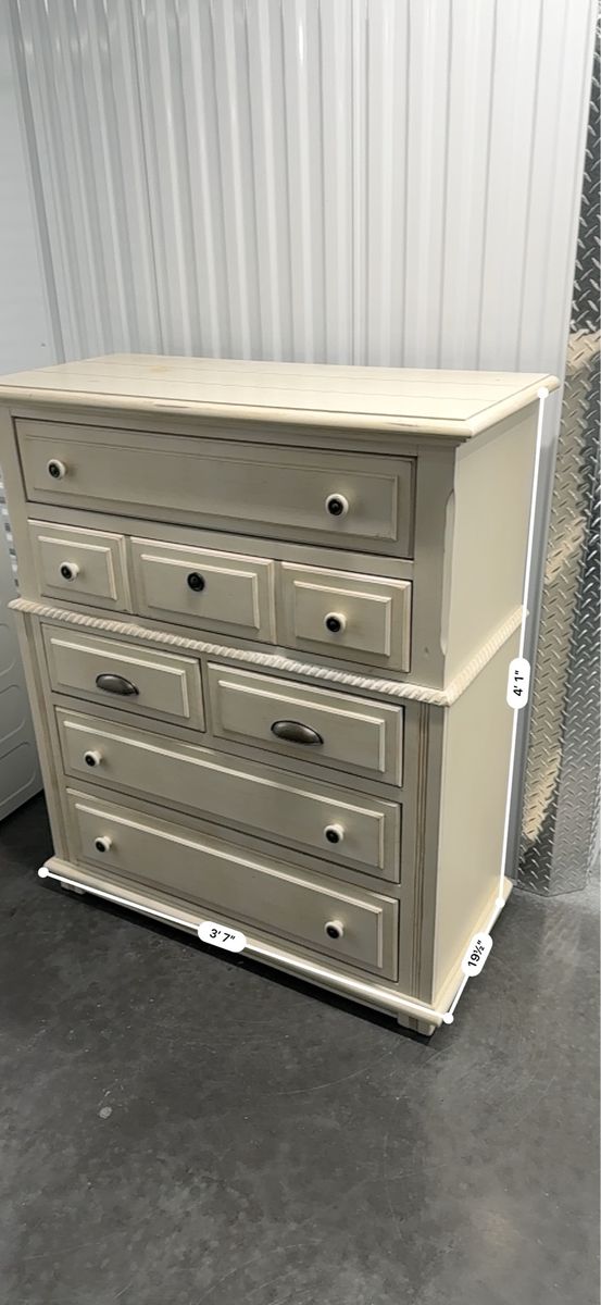 Large wood dresser in good condition. Comes with optional feet if wanted. Great piece for a restoration project, it just won’t fit in our space anymore. Dimensions in the picture are rough but should be close.
