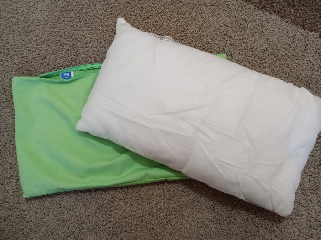 Pottery Barn accent pillows with durable twill fabric measure 11" x 22". These pillows feature an invisible zipper to remove for washing and a back pocket to allow covering the back of a chair or bench.