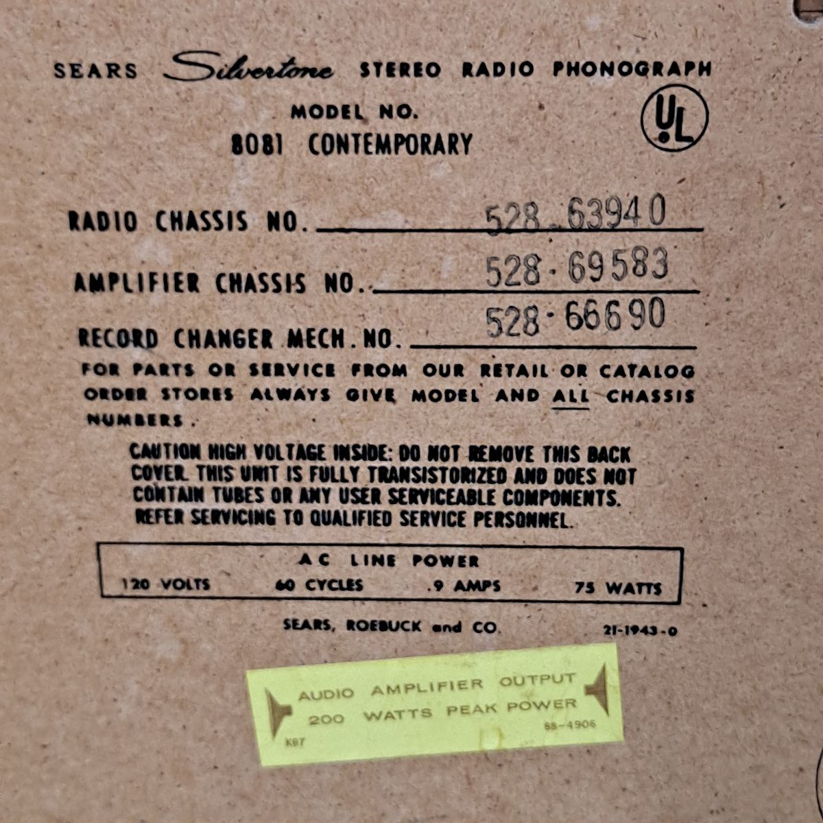 Vintage Sears Record Player/Stereo/Amplifier Console