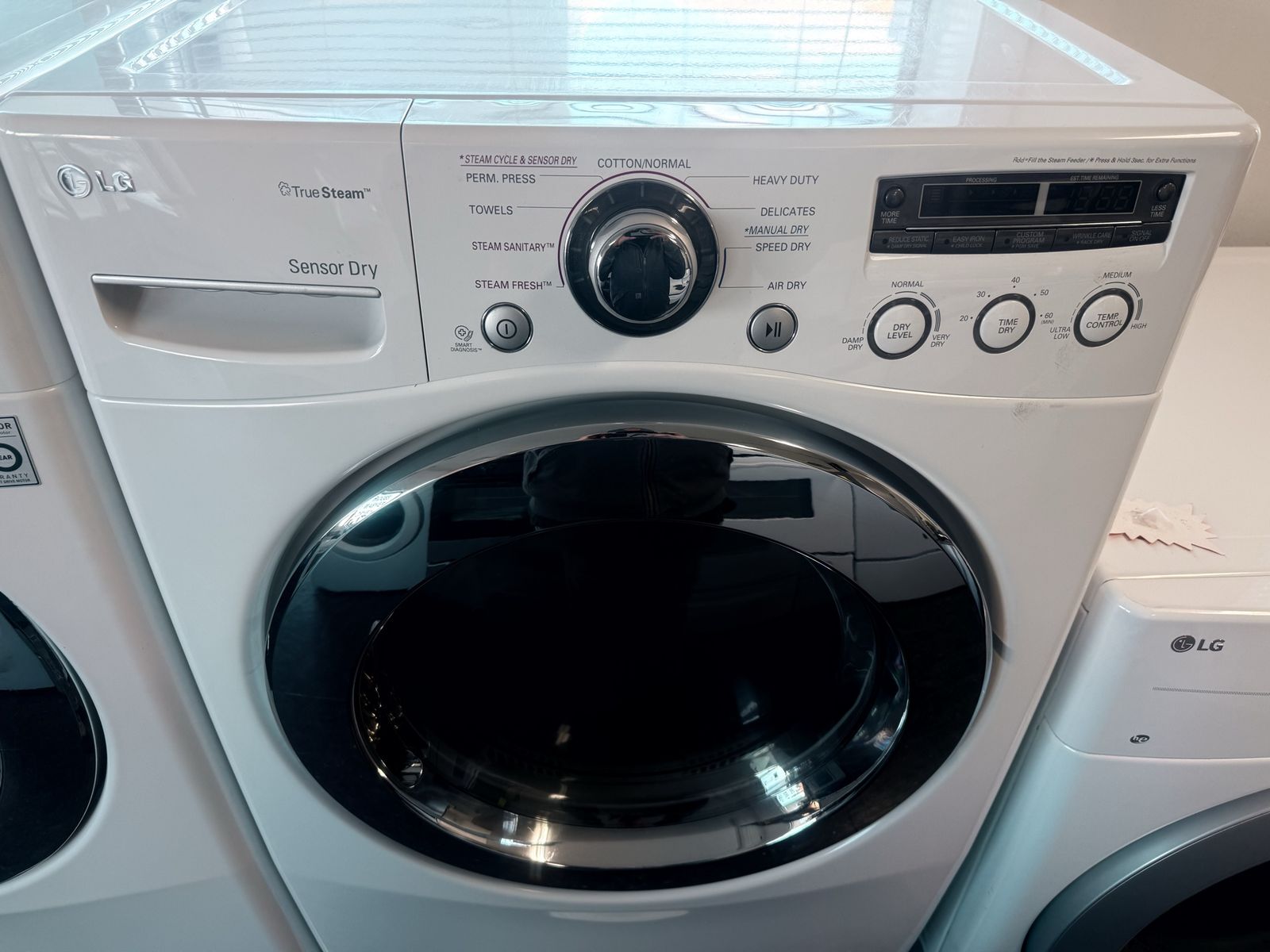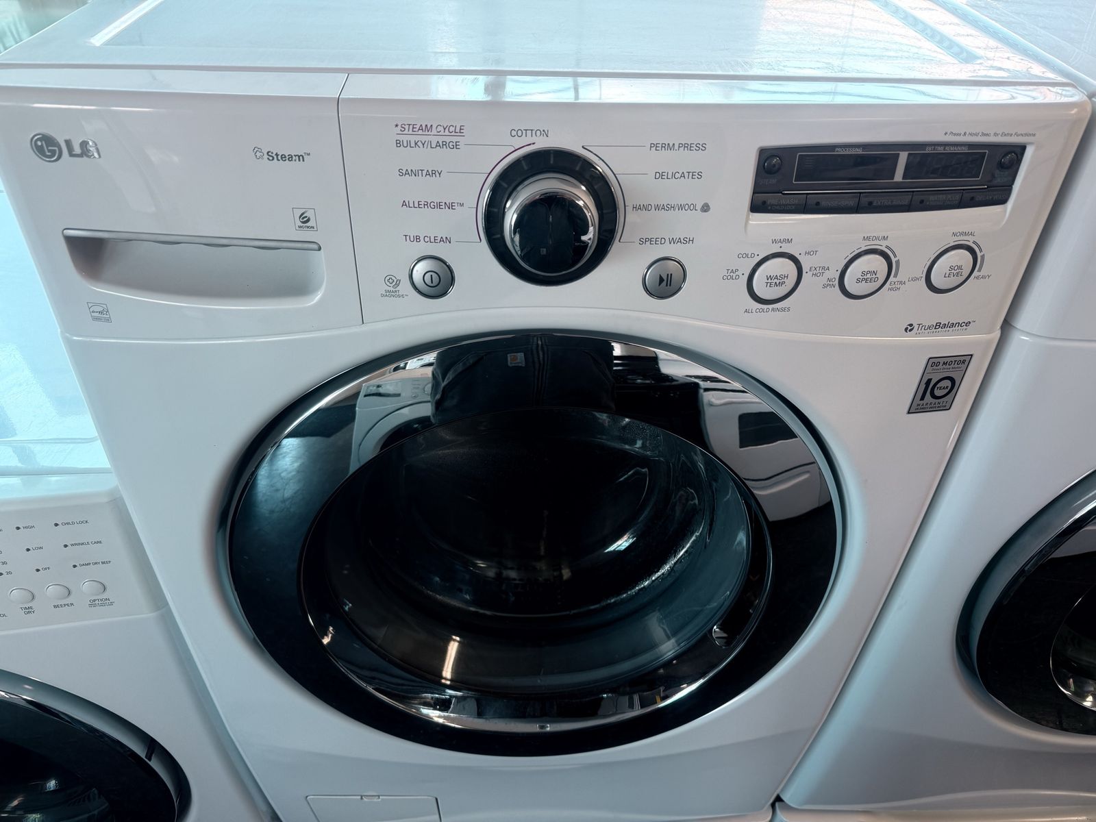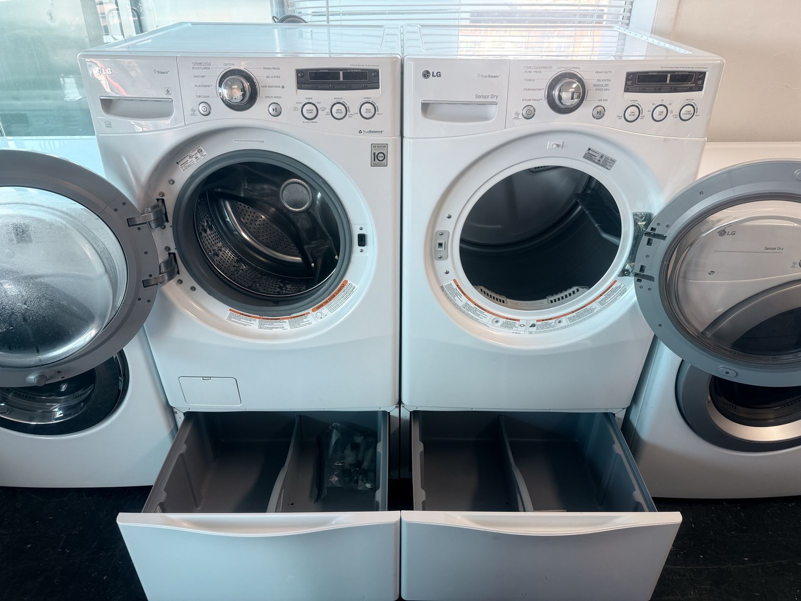 ApplePayVery clean matching white ultra capacity Steam Lg washer & dryer set on pedestals that can go side by side!!