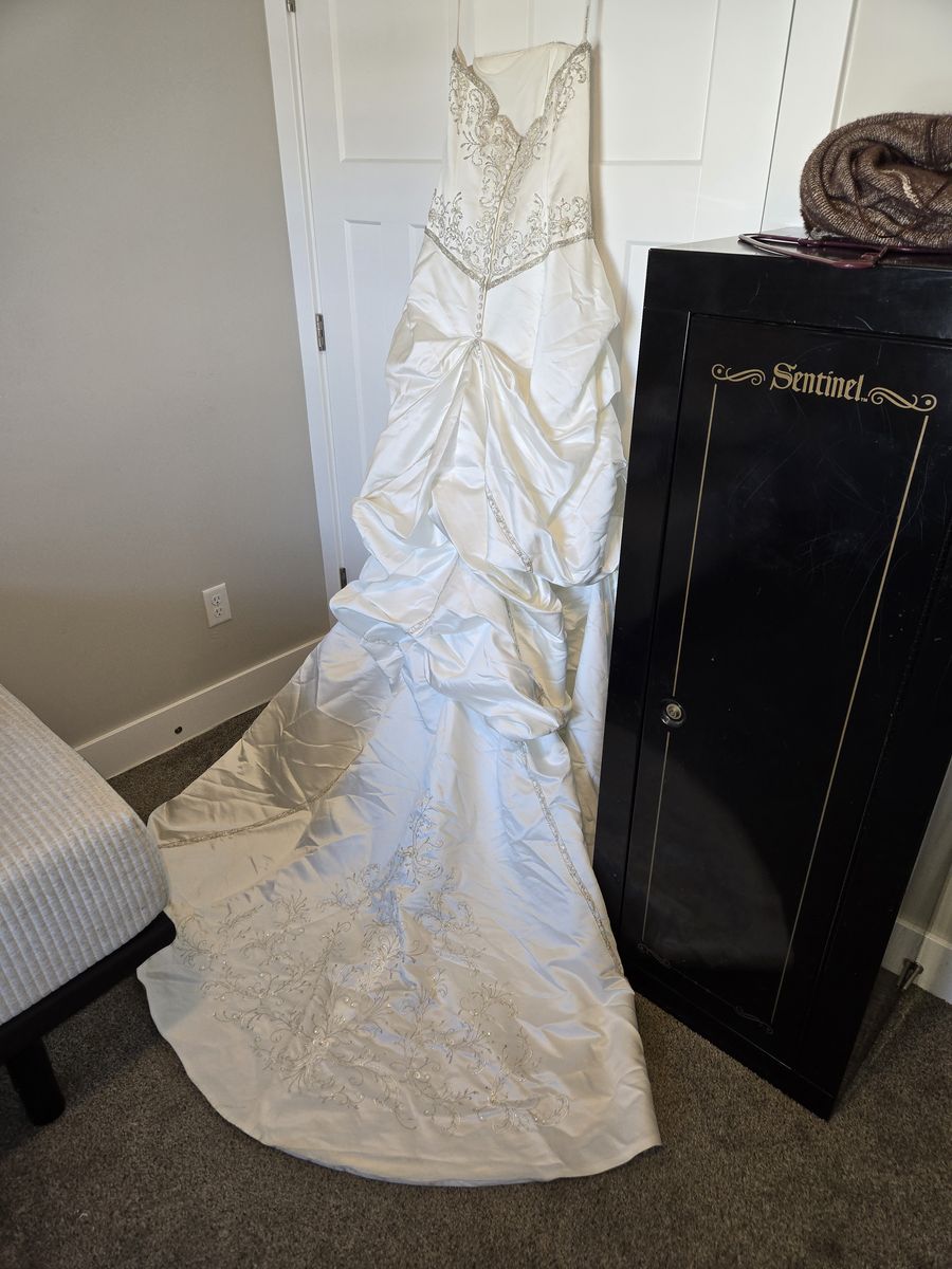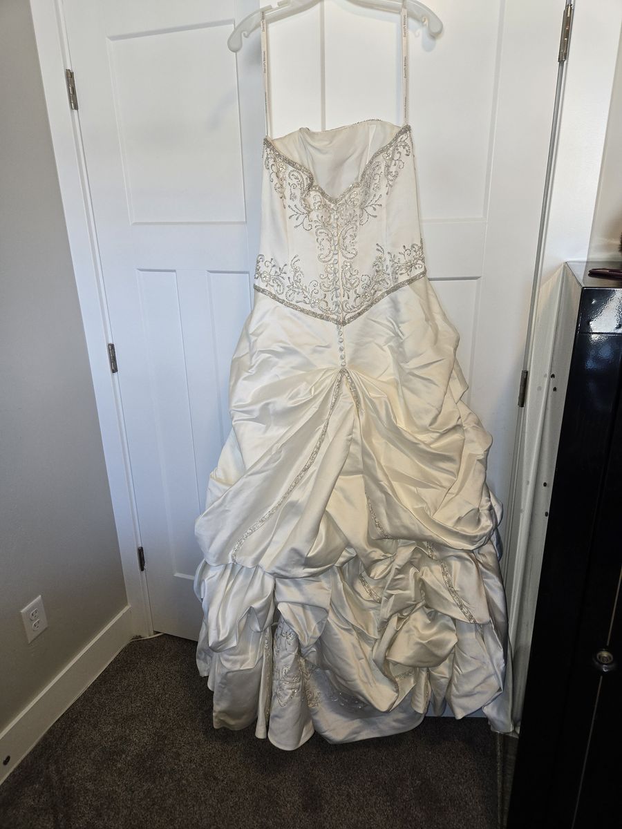 VenmoDavid's Bridal wedding dress with petticoat. Size 8. Beautiful train with beading. Has been in storage and will need to be cleaned.