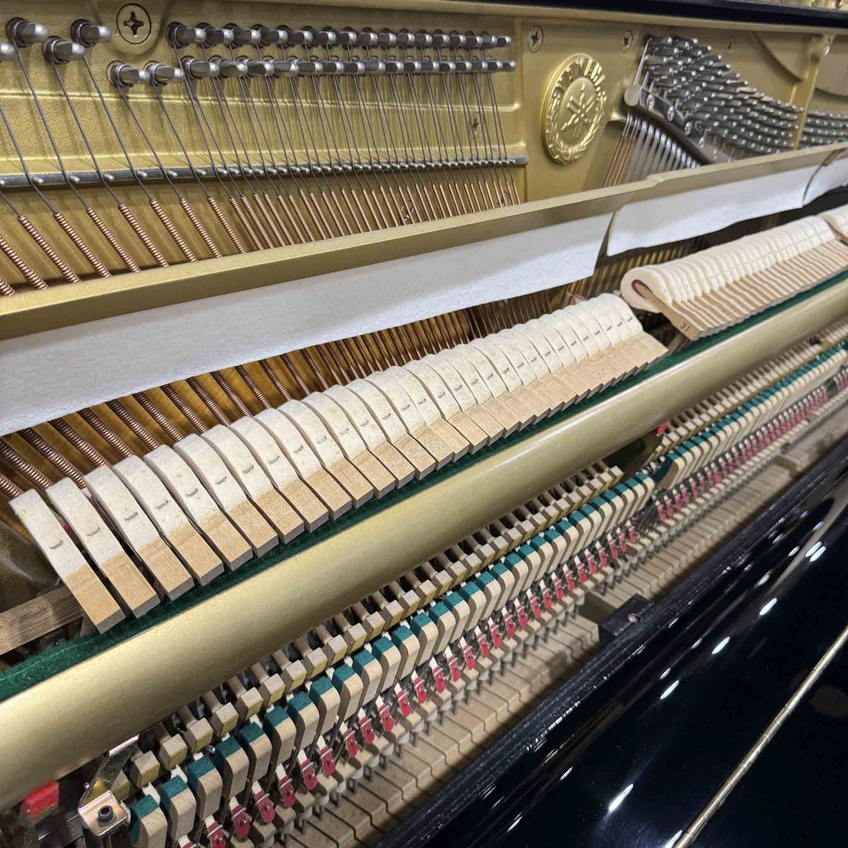 Built in Japan in 1988, the UX1 is part of Yamaha’s upgraded “X Series” line, featuring their signature full X-back post design for added structural rigidity. That’s the kind of long-term stability I really appreciate as a technician. This piano has been fully refurbished in our shop by our in-house team—action, hammers, keys, regulation, tuning, voicing, everything. It’s playing and sounding fantastic.