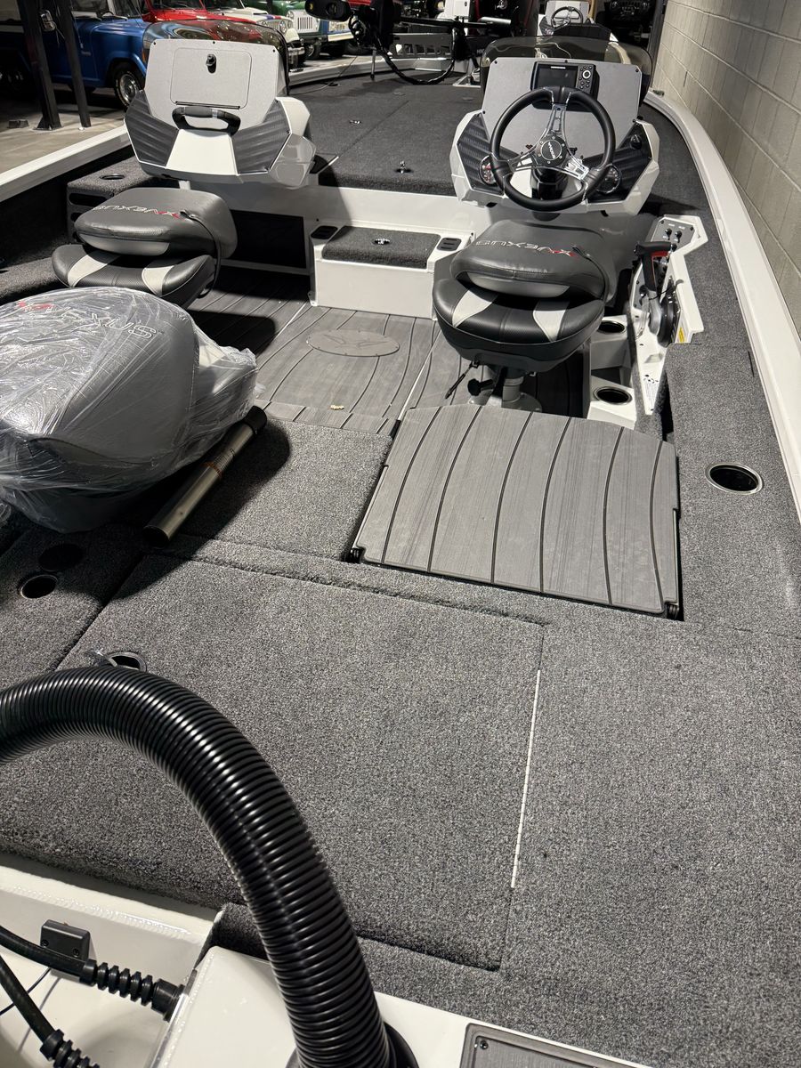 This Bass Boat has seating for four people comfortably or you can fold the rear seats down for a traditional bass boat layout with massive deck space. Comes with a Ski Pylon for pulling all the family toys.