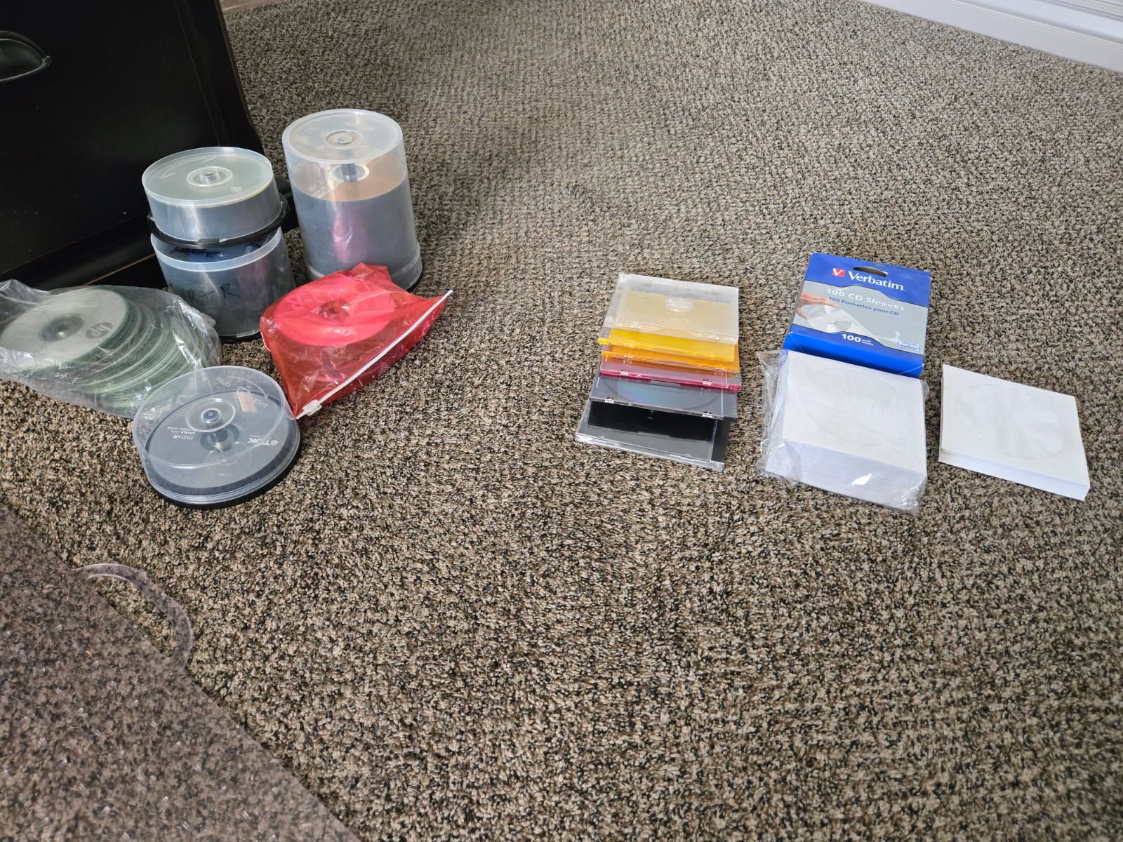 VenmoVarious blank DVD-R, CD-R, and CD-RW plus 220 paper cases and 6 plastic ones.