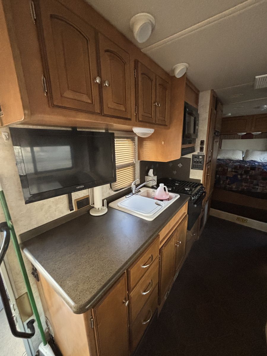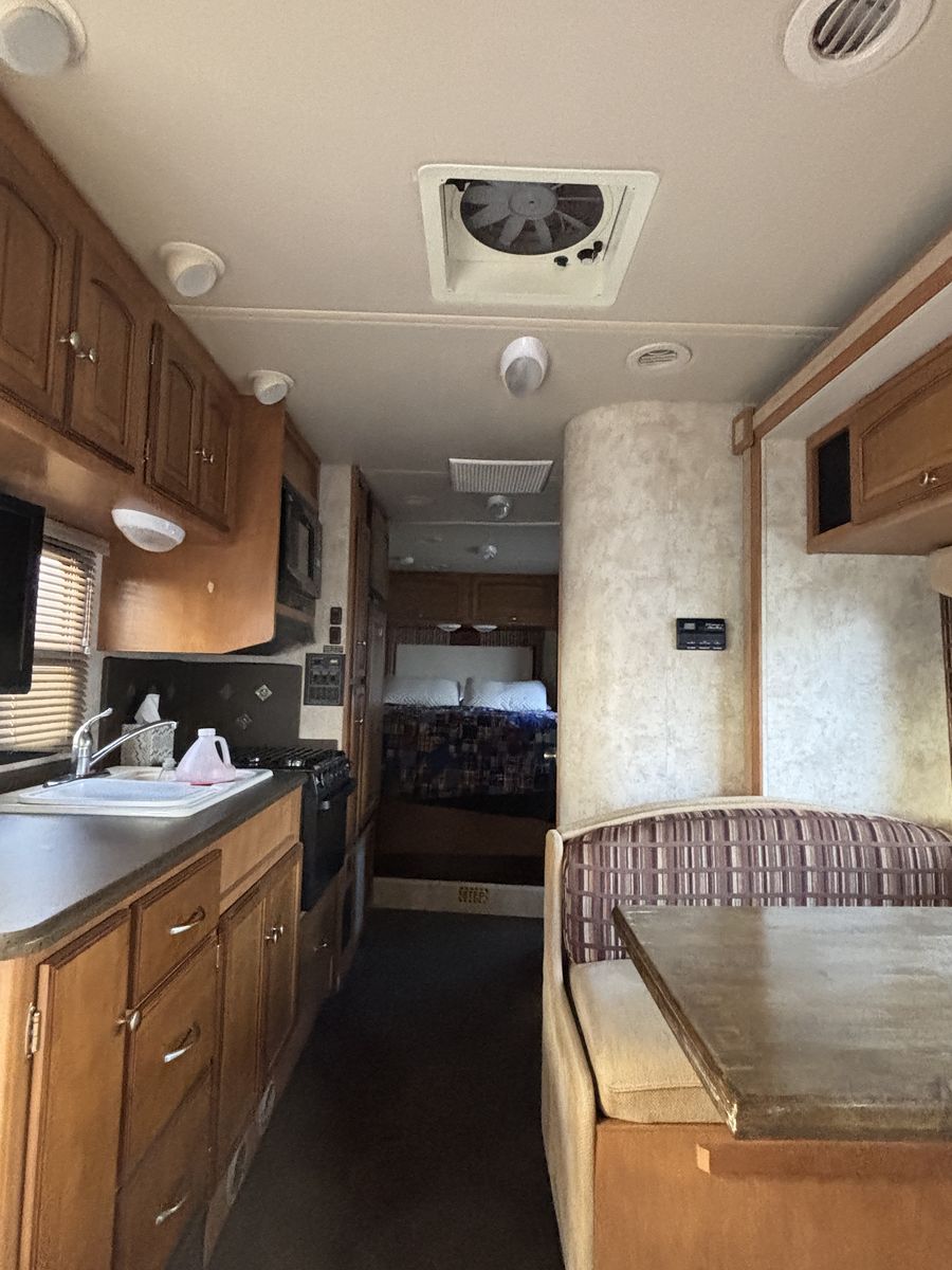 31 foot long. One slide out. Has 53,700 miles. Can sleep up to six people.