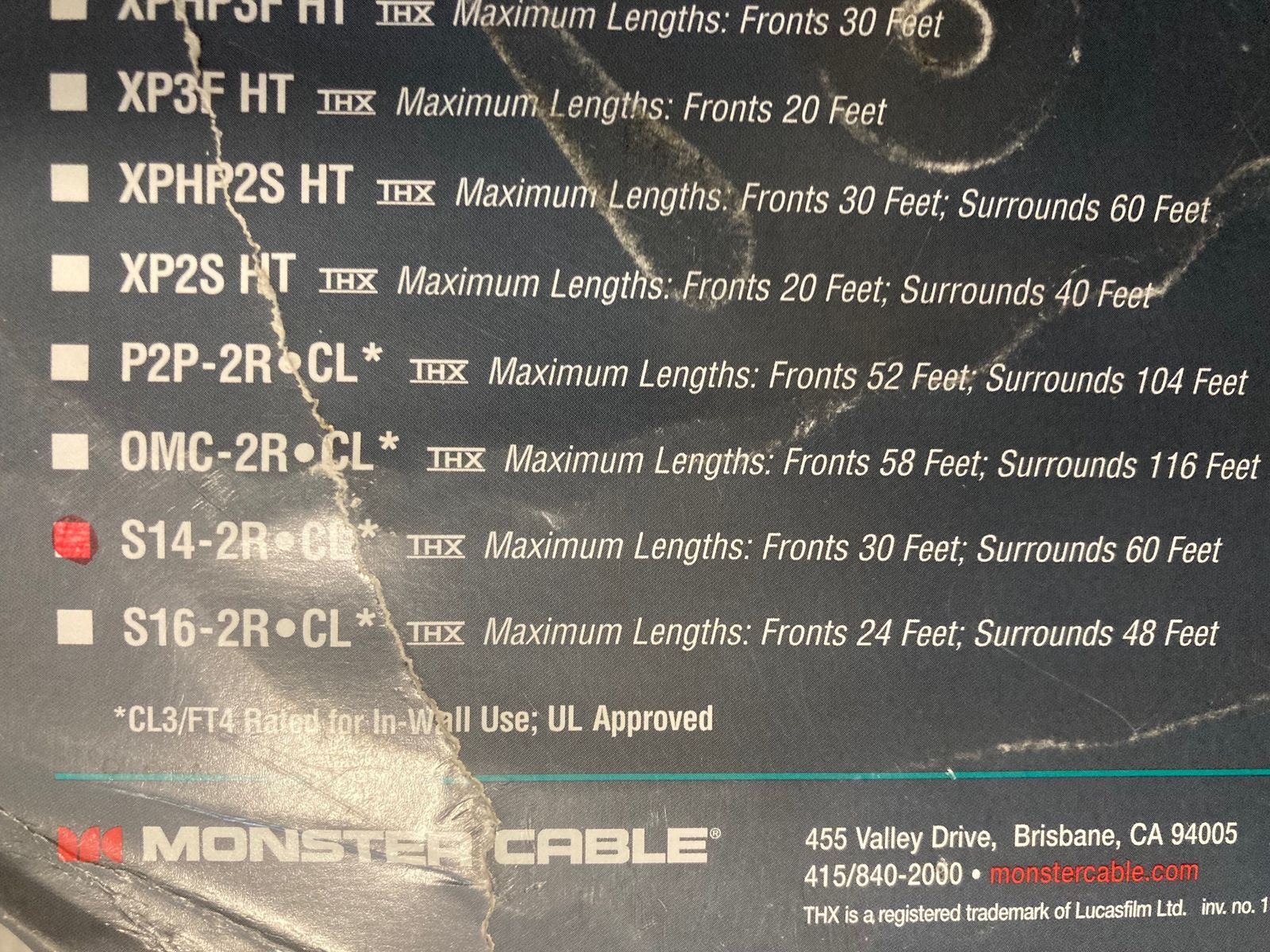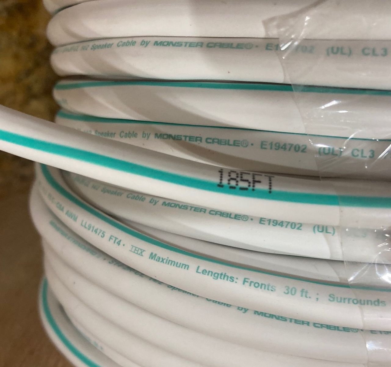 VenmoSelling 185 Feet - Monster Cable S14-2R CL 14 Gauge AWG Speaker Cable In-Wall 2 Wire Stereo Home Theater Digital Audio, THX Certified Cables, CL3/FT4 Rated, UL Listed . $65 (.35 cents per foot) / This was left over from our home theatre installation, Full details below: