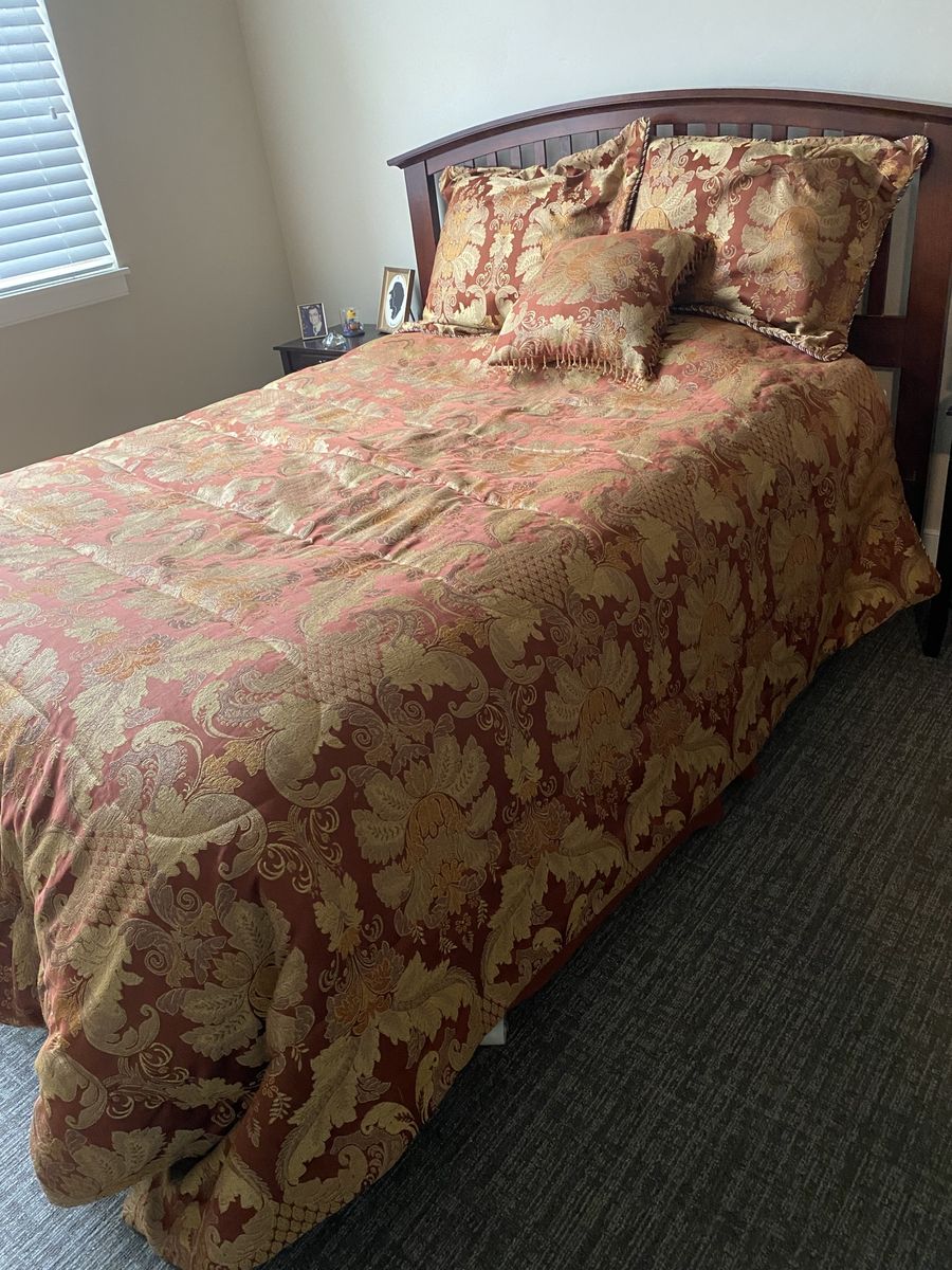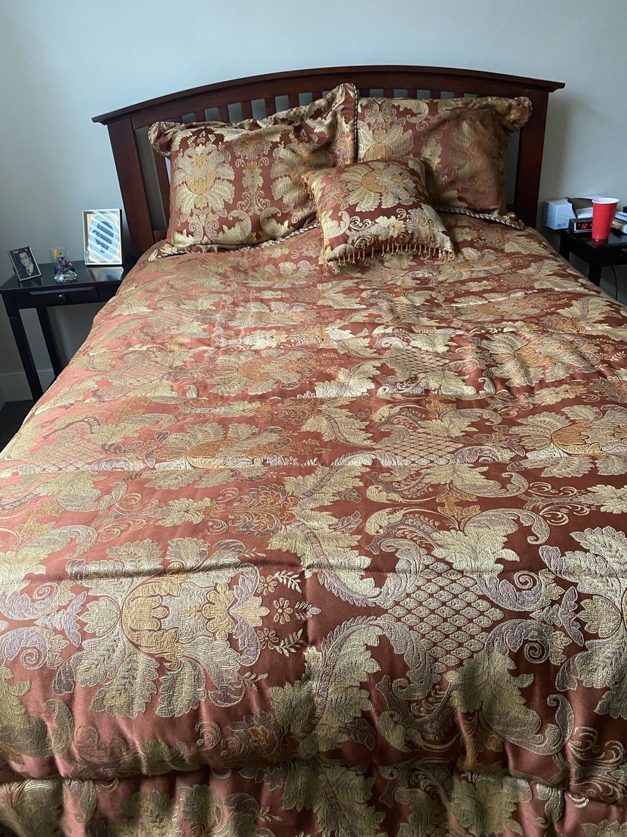VenmoQueen bed frame with wood headboard. Near new condition /w box spring. No mattress. $200 obo. Matching night stands as seen in picture for additional $30.00