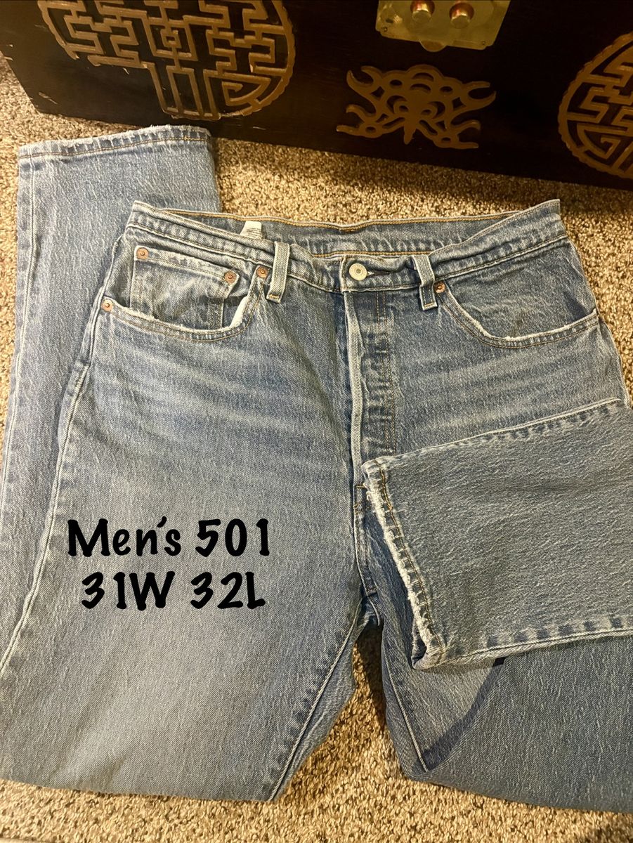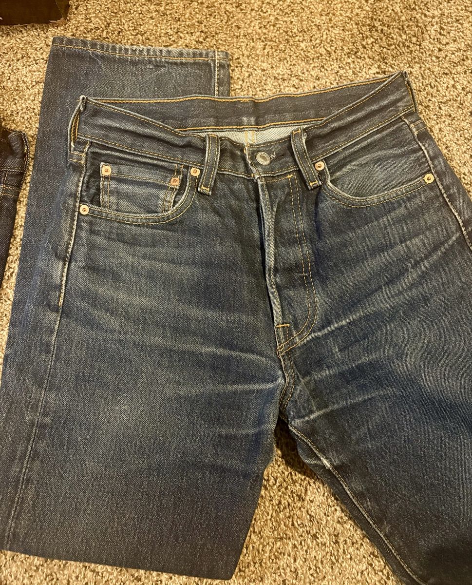 ApplePaySizes are in the pictures, all in good shape. I do feel like 501’s do run small.