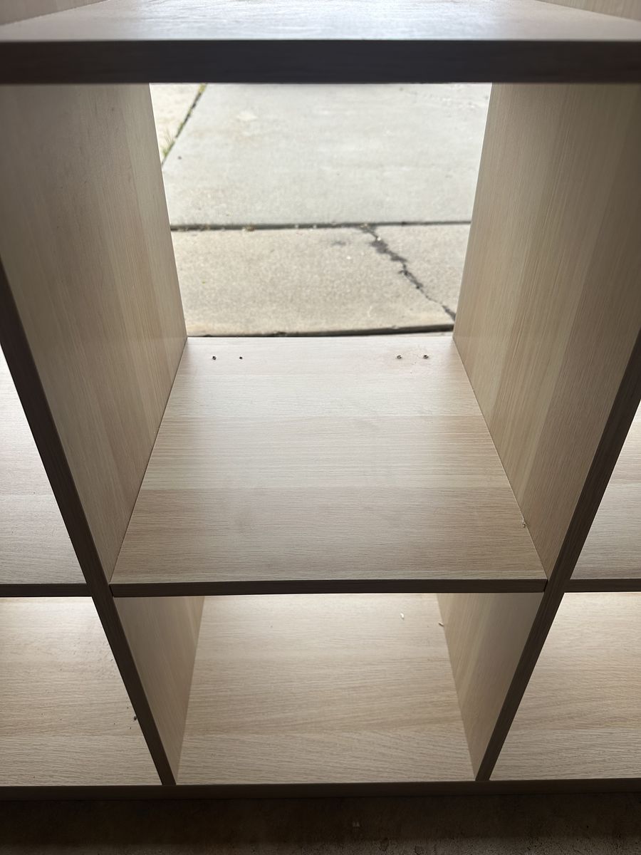 VenmoIn great shape. Has just a few holes drilled into the shelves from previous Kallax drawer inserts.