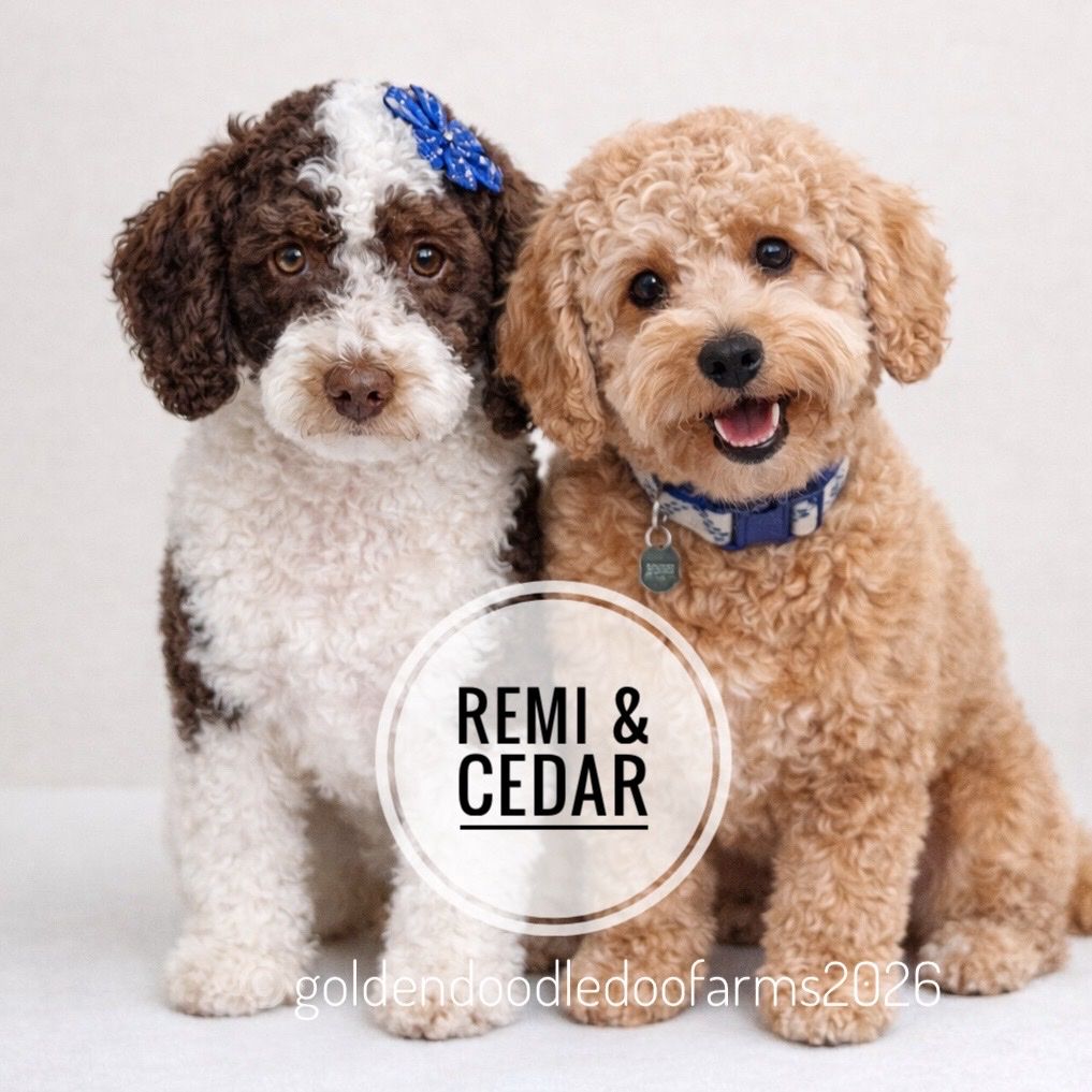 The puppies are Golden Aussiedoodles. They are 9 weeks old and are doing great at crate training. They have had ENS, two sets of shots, and 3 weeks of crate training. They are being raised in my home. Both parents live in guardian homes. I have been in business almost 10 years and am always learning how to do things better. They come with a shot record, an information sheet from the vet, a blanket with smell from littermates, a gallon bag of dog food, probiotic chews, calming chews and lots of resources and advice. I am dedicated to the success of the puppy with your family. We are on Instagram, Facebook and online @Goldendoodledoofarms and www.goldendoodledoo.com