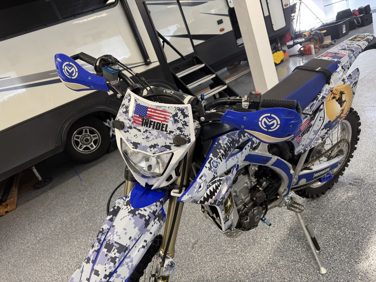 VenmoI am selling my lightly used 2015 WR 450. It is super clean with very low hours (I take it out only once or twice a year), always garage kept, and meticulously maintained. It is fully street legal. This bike has the FMF mega bomb pipe and silencer and GYTR chip installed to give a lot more throttle response and a super-aggressive sound. I has loads of power all the way through the power through every gear. I have also a ton of cosmetic upgrades that you can see from the pics (way too much to list). I am including all stock parts in a box as part of the sale. I am selling because I want to get a lighter weight 2-stroke that won’t try to kill me.