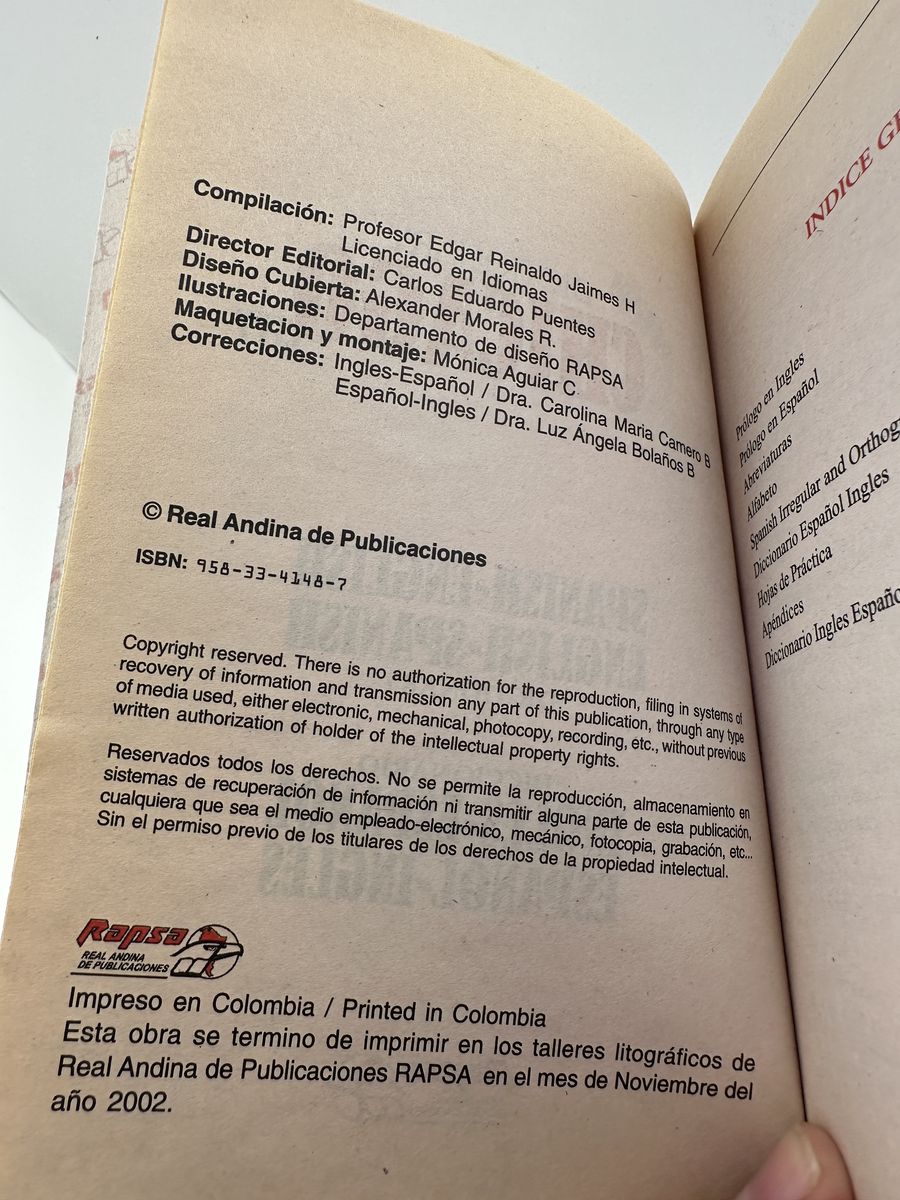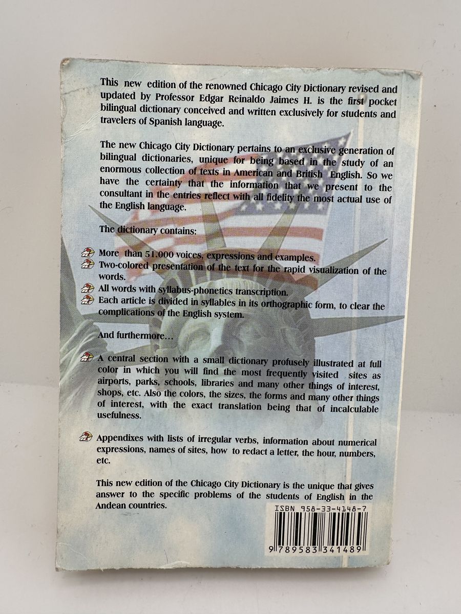 ApplePayChicago City bilingual Spanish-English / English-Spanish dictionary published by RAPSA in 2002. Designed for students and travelers, this compact reference includes over 51,000 words, expressions, and examples, along with phonetic pronunciation guides and illustrated sections.