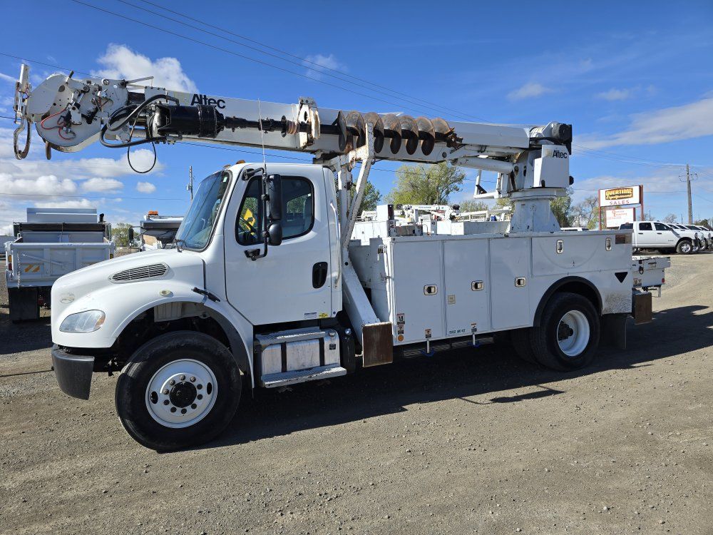 2018 Freightliner M2 Derrick Digger, 250 horsepower 6.7L Cummins diesel engine, Allison 3500RDS automatic transmission, 80,000 miles 5,700 hours, four wheel drive, exhaust brake, Altec DC47TR 47 foot 23,790 pound capacity Derrick Digger, 24 inch auger, pole grapple, good tires, former fleet vehicle 208-734-3434