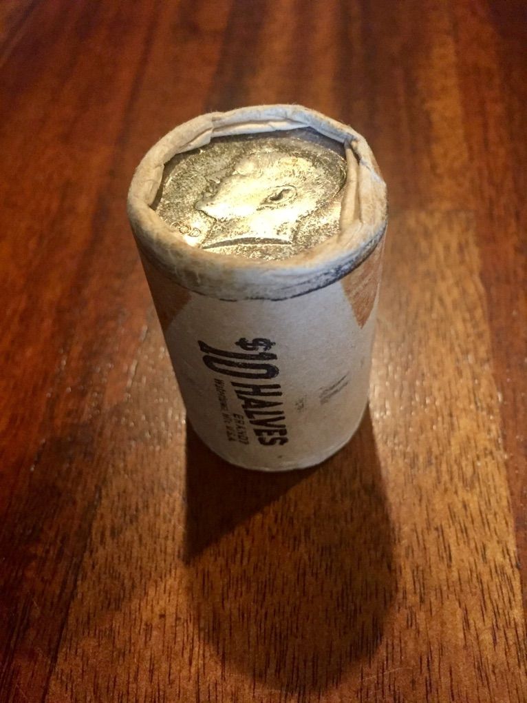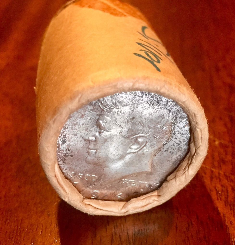 Offering an original unopened roll of 1964 Kennedy Half Dollars.