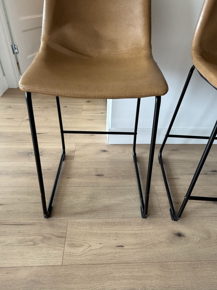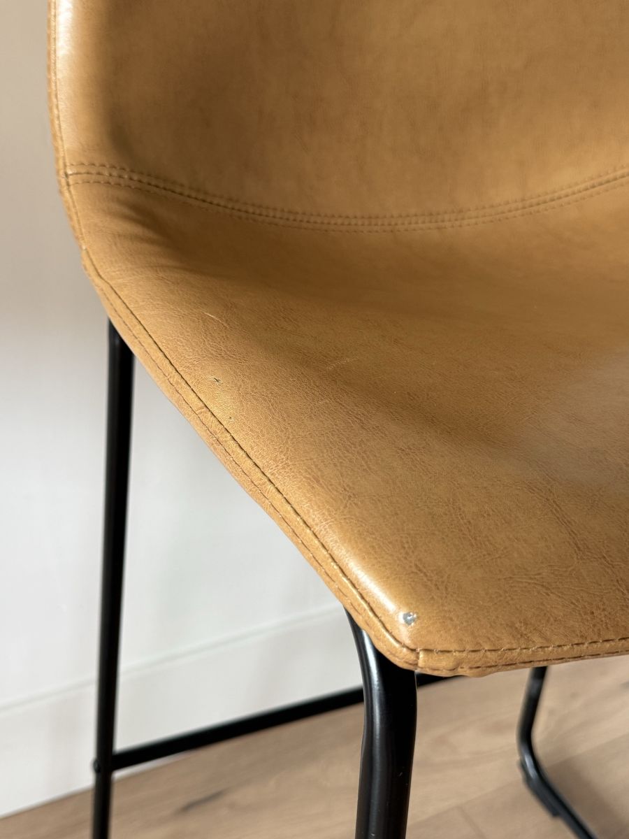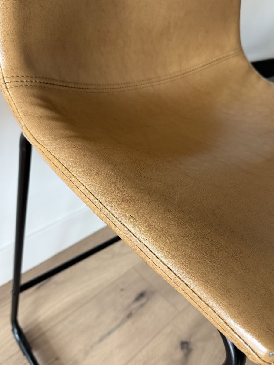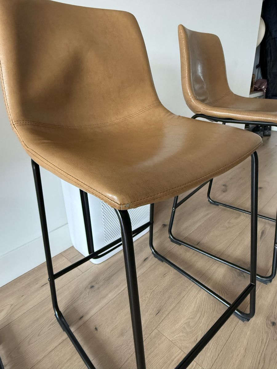 VenmoSet of 4 leather bar/counter stools with black metal legs Please check the photos one is missing a bar and others have some wear