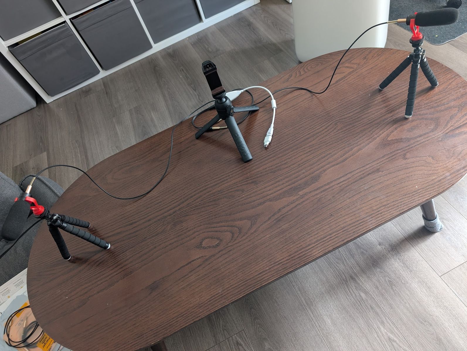 GooglePayI put together this mini podcasting setup to use on the go and it works great! It has two mini shotgun style microphones on flexible tripods and an adapter that allows you to plug them both into a phone or computer and record on the go! Great for recording on location or just for a super simple at home setup you can use with your phone. Also including an adjustable tripod with phone clamp!