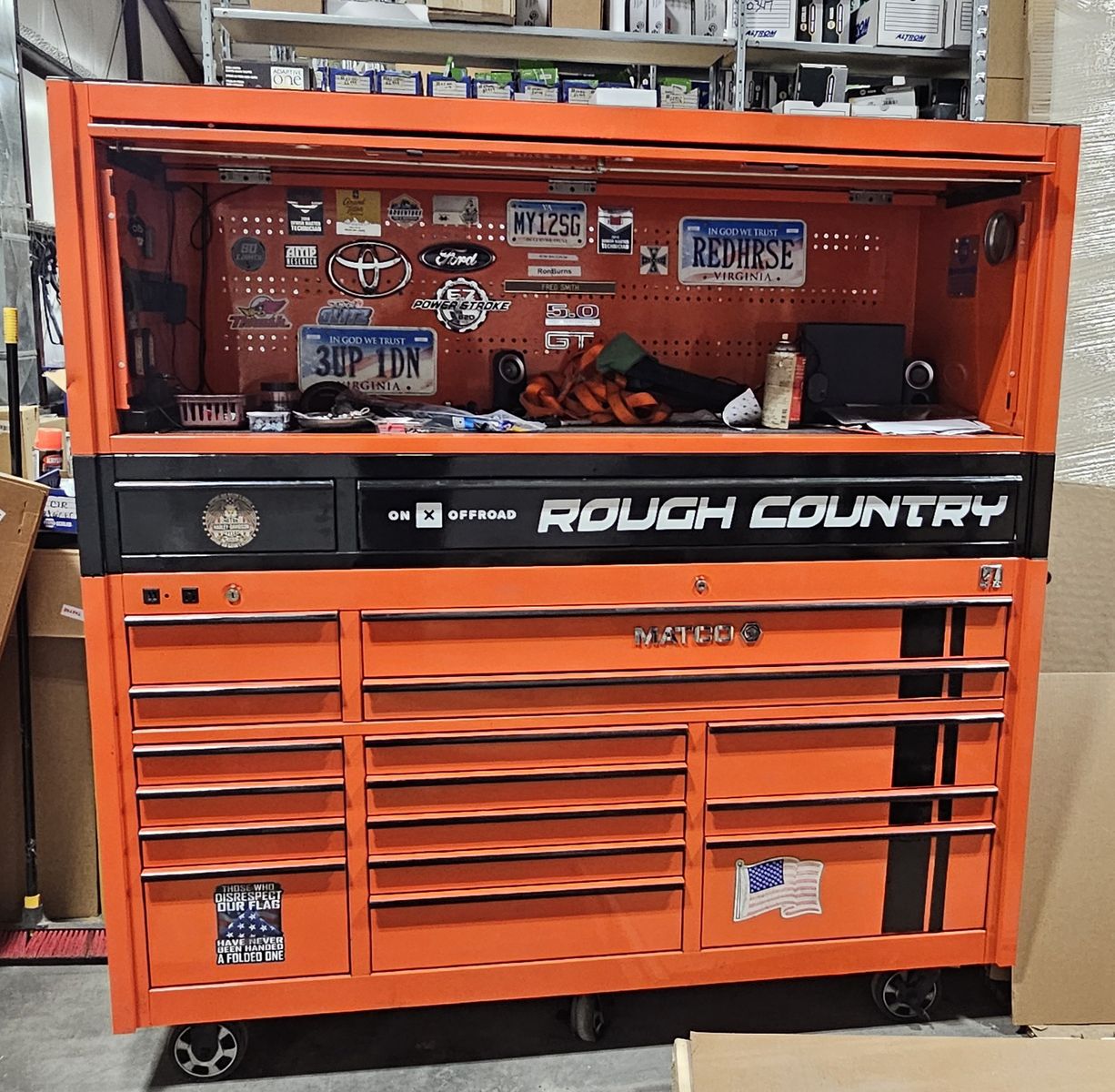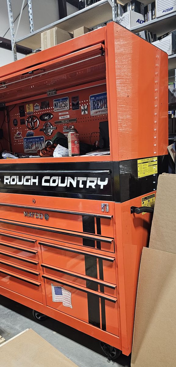ZelleBright orange & black Maco tool box, under the black wrap is green for your info. Massive tool box holds everything you need and more. Paid over 11k for it last yr, asking 8600 OBO . Has 2 minor imperfections they are in the photos. Prefer buyer makes arrangements for pickup, but for an additional fee i could myself deliver. Located in Thayne, cash/venmo only!