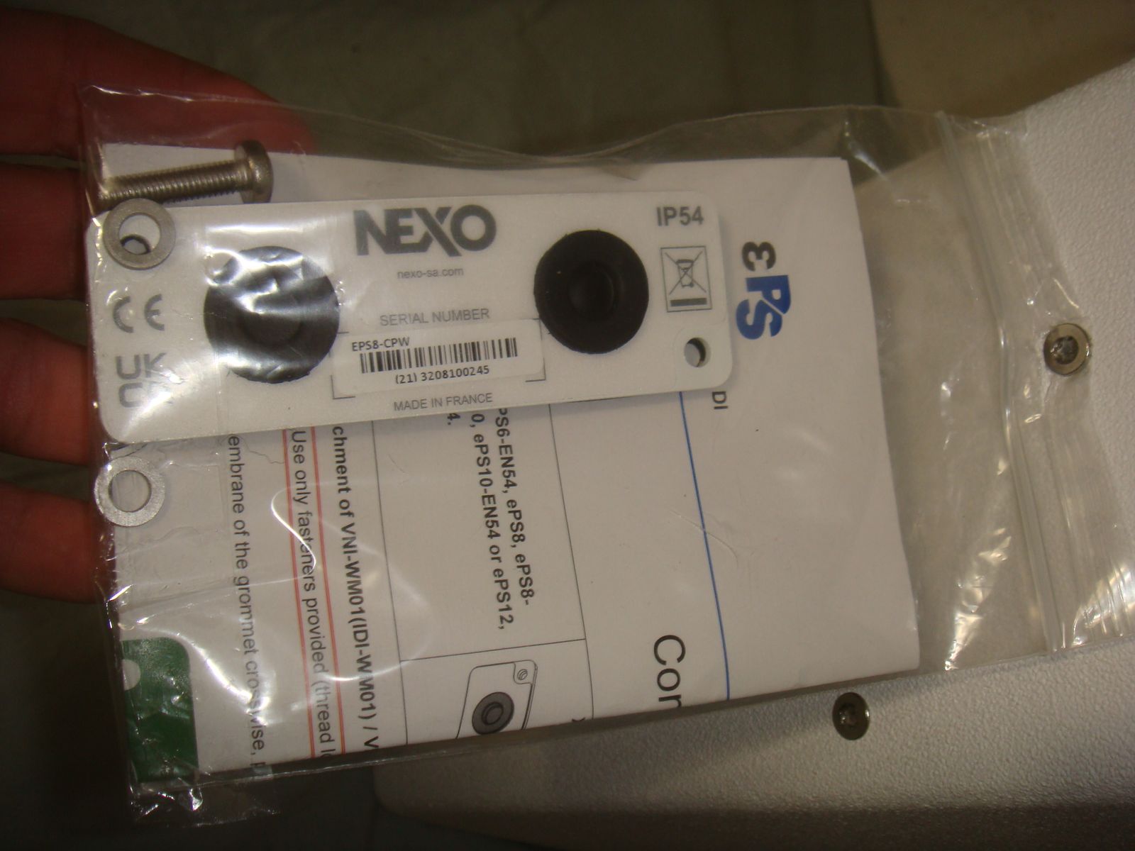 NEXO EPS8-CPW IP55 HIGH POWER INSTALLATION 8" PASSIVE 2-WAY OUTDOOR PA LOUDSPEAKER -WHITE. This is a new, never used, open box speaker. It has a copule of super minor marks on it, and the grill looks slightly yellowish to me, but it's otherwise in new condition and works perfectly! These are normally over $1400 each. It comes with everything shown. (We have 2 of these - price is per speaker) This is your chance to save big-time so don't miss out!!