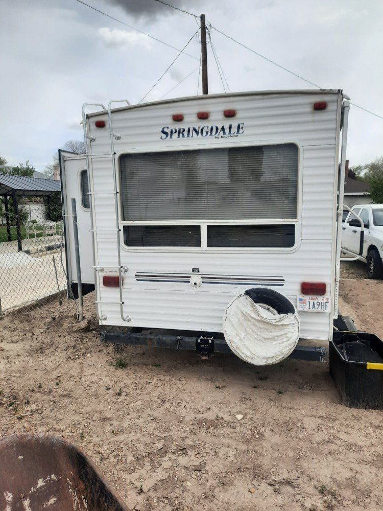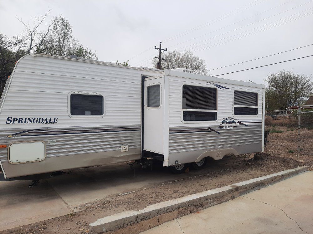 2007 Springdale 26' trailer. Sleeps 6. This trailer has been so much fun. I am downsizing because the kids have grown and moved away. Trailer has working fridge. freezer. AC and furnace. No leaks at all. Includes 3 Solar panels. inverter and 4 new batteries. It is set up to have 6 batteries if you want that many. Two TV's and a VCR as well as some dishes and utensils, hoses and a few extra things. Side note the awning will need to be replaced and the outside shower is broken. $8,500 OBO