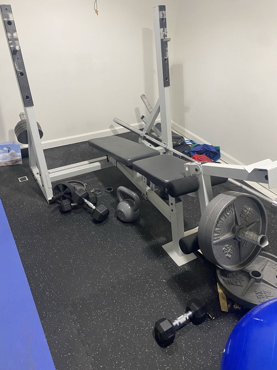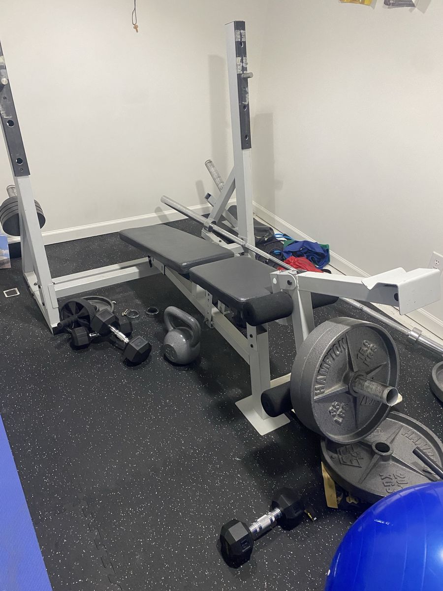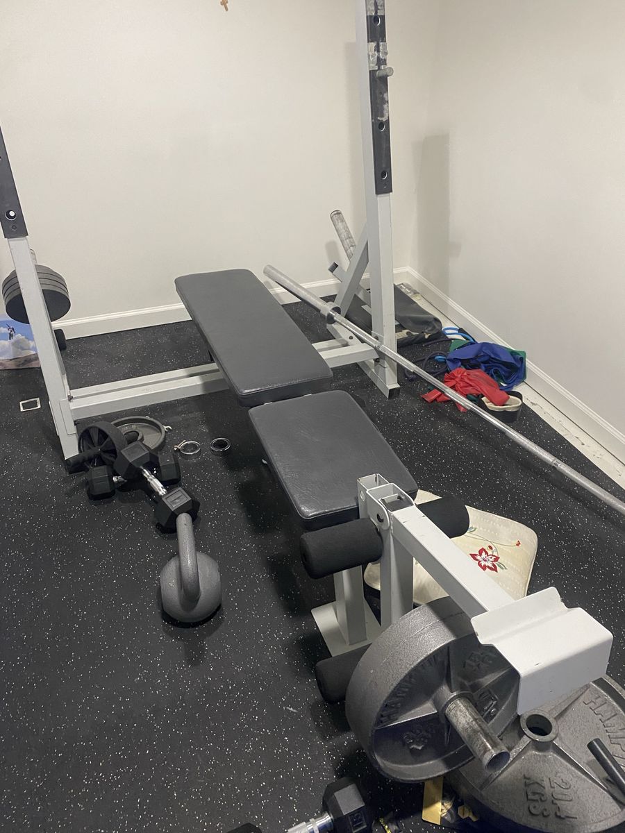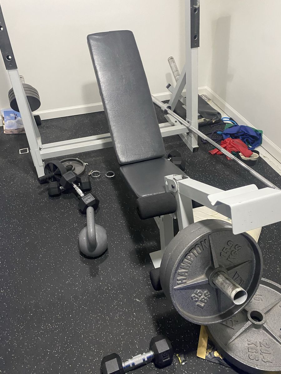 ZelleHave a lightly used adjustable bench for 2 incline options, flat and decline and weight set. Also has a leg extension and leg curl attachment, comes with the. bar 2 45 lb plates, 35 plates 10 plates 2.5 plates And 4 5 lb plates Only selling cause house is to small for set and dint use as much as should for how much room it takes up in our humble home. Can help load up or if you need can potentially deliver if you little more for gas and time Thanks