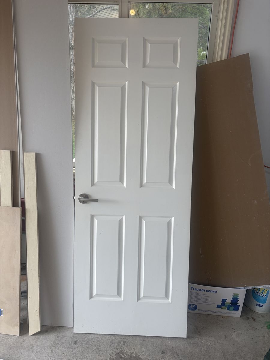 VenmoLeft hand out swing door, 30x80 painted white in excellent shape…no dings or blemishes.