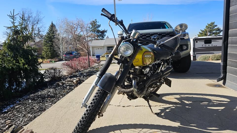 Runs great! Some cosmetic wear and tear, but new stator, new gas tank liner, new battery, new wiring harness, and carbs have just been rebuilt. Side mirrors and speedometer have been added. Unknown mileage. Clean title.