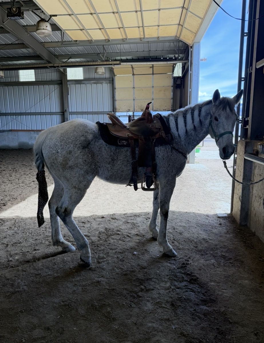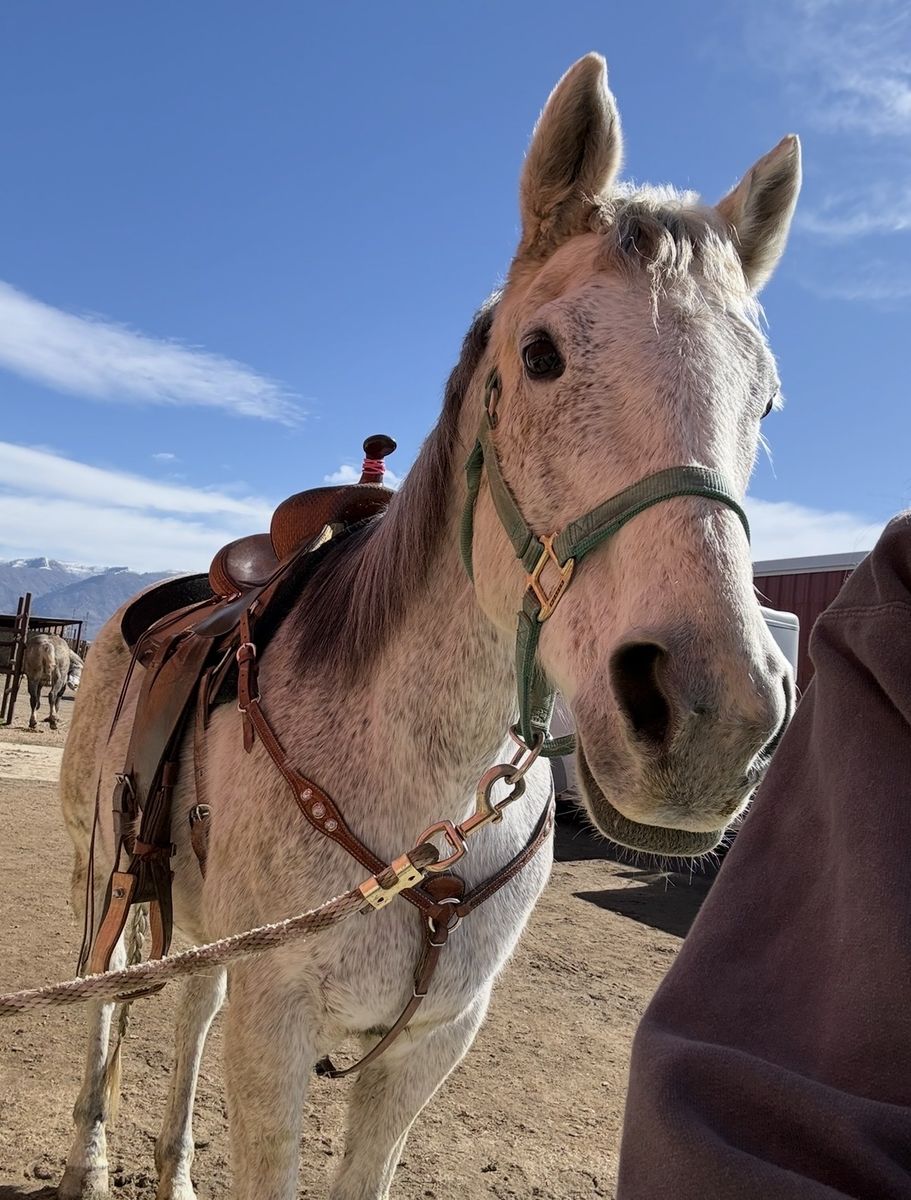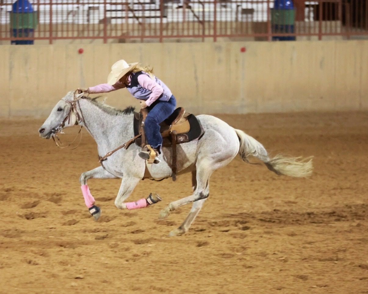 ZelleThis is Halo! She is a 17 year old grade mare. I have been college rodeoing on her this last year and she’s my main girl! She is selling due to no fault of her own, I would keep her if I could. She is super solid and consistent, she runs the same run every time. With her previous owners she runs 22 seconds in poles, I just don’t run poles so I’ve only entered her a few times! Also with her previous owners she is a jr high youth 1D champion 2024 (12 and under) and was placing in the 2D youth. (18 and under!) this past year in college rodeos we’ve been very consistently placing middle of the pack with super tough competition! I run 3D-4D open times is jackpots with 130+ entries on her. She gives me her all every single time! She would be amazing step up horse for a young girl wanting to go faster. She is not a babysitter, but as long as there’s no barrels or poles out she is good. I’ve taken her on multiple trail rides as well and she loves it! She is selling as grade because the mare died before dna was done, but she is bred back to dash for cash. Important things: she got kicked about 7 years ago and you can see it on her hip. It has never caused issues! Sometimes she will freeze up in the gate, it has never gotten me turned out but just keep pressure on her and she will go! I’ve never gotten turned out. She does crib, but I have a custom collar that will go with her and she doesn’t crib with it on at all! I did get her stifles injected this March, and it has helped her run a little better but it isn’t a necessity. She runs just fine without being injected. She’s the best girl with a lot of heart! I’m hoping to find halo her next best friend. Open to offers!
