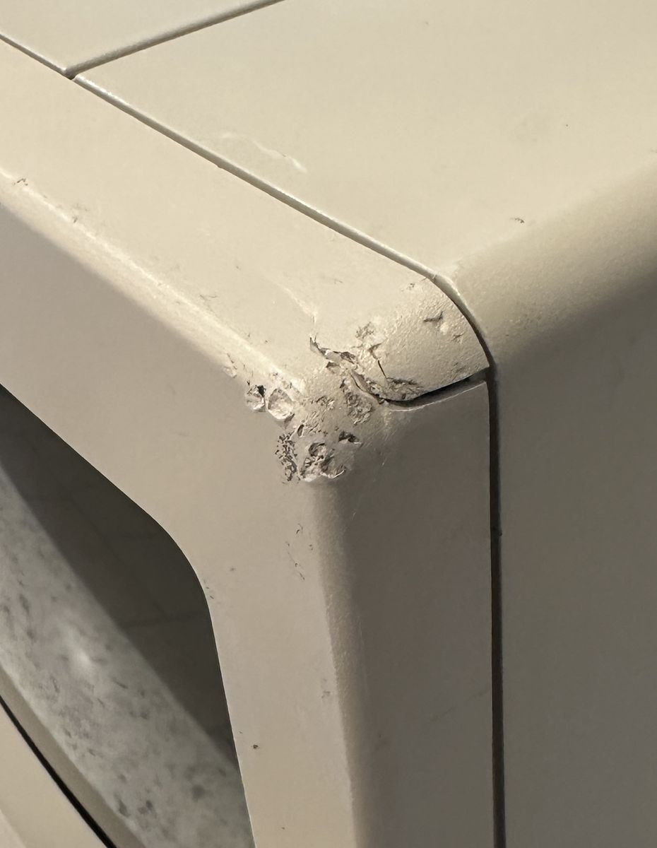 The unit is in good condition for the age. It is missing one of the rubber feet and has minor damage on one of the corners (see picts). Battery has been replaced with a coin lithium battery. With the PDS expansion slot, this unit can be upgraded to a 68030 CPU or graphics card for external monitor.