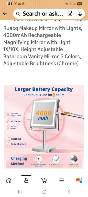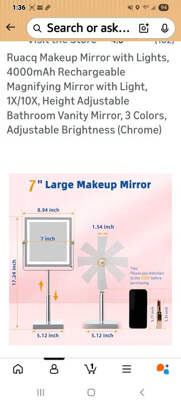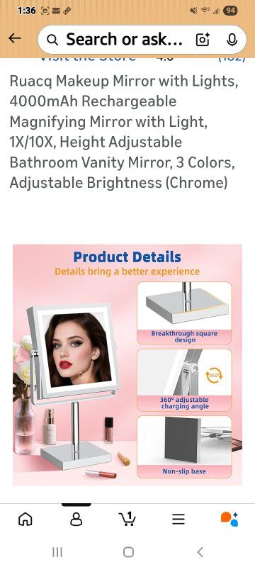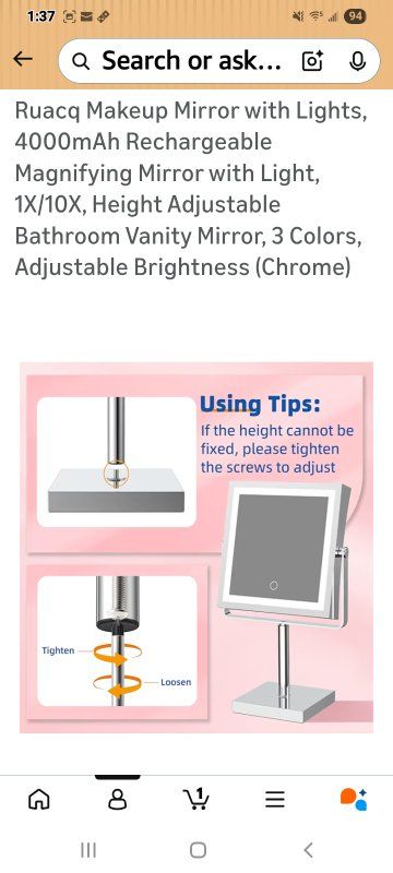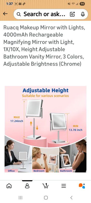 High Capacity Battery] Our Bathroom makeup mirror features a 4000mAh battery, providing up to 8 hours of continuous use [Square Design] The adjustable makeup mirror surface of makeup mirror with lights and magnification is increased by 20%, no dead angle [1X/10X Double Sided Magnifying Mirror] This led mirror for bathroom’s 1X vanity mirror is used for overall makeup and daily skincare, the 10X magnifying makeup mirror is suitable for applying eye makeup, lipstick, etc [3 Color Lights & Brightness Adjustable] The makeup mirror with lights and magnification features cold light, natural light, and warm light, (Touch switch to change color light, long press to adjust brightness) [Adjustable Height] This lighted makeup mirror with magnification can adjust the height and is suitable for various scenarios such as bathrooms, bedrooms, offices, etc [Present] Our bathroom mirror with lights can be an ideal gift for friends and family [Easy Installation] This modern vanity makeup mirror’s packaging includes all necessary accessories, installation templates, and instructions.