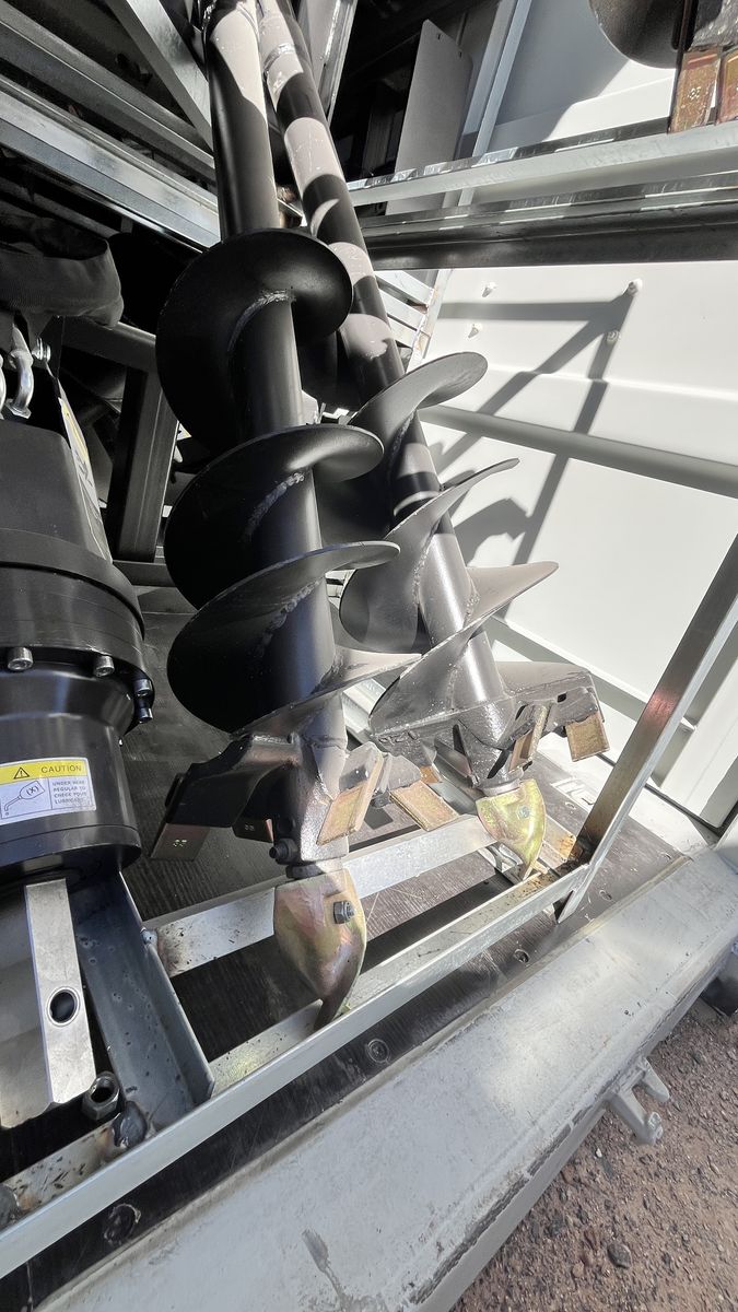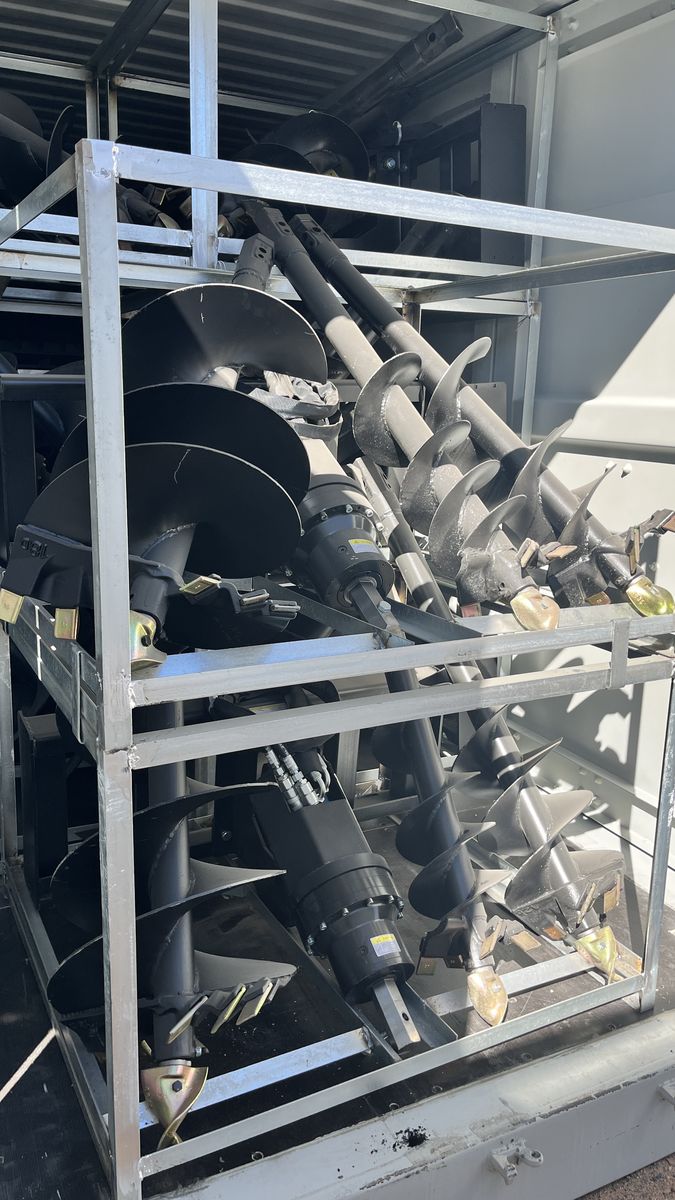 Skid Steer Auger with 3 bits in 9'', 12'', 18''. This skid steer auger is designed to dig holes as your request. With heavy-duty hydraulics, this skid steer auger attachment can go into soil and earth with speed, ease, and efficiency. You can take advantage of this skid steer auger to drill post holes, mix and pour cement, grind stumps, and others. 3-bit design strengthens the efficiency and accuracy of digging work. This variaty of bit sizes, you can dig any hole needed. Asking $2,800. I only have 2 left