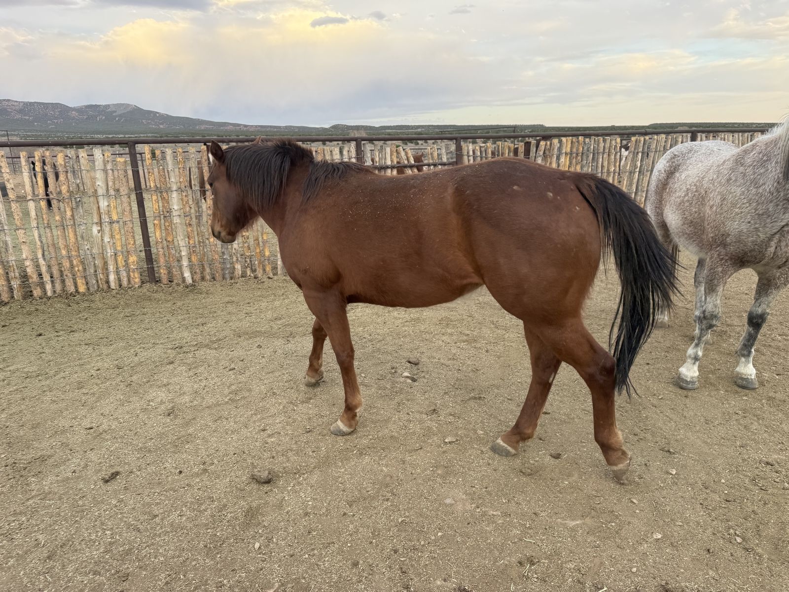 VenmoI have a mare that’s 3 this spring. She meets you at the gate to catch her. She leads, stands tied and trailers well. Shes been trimmed, probably would take an 0 or 00 shoe. She’s got a nice full mane and good black feet. Shes been long line driven and saddled. She’s a little cinchy when you saddle at first but works out of it in the round pen. She had some round pen work. Shes just the right age to get on and put some miles in. She’s been ponied a little. She’s 14.2HH Any questions give me a call. Call is best. If you want more pictures I can get them. $4500 obo 435-790-6434 Becca
