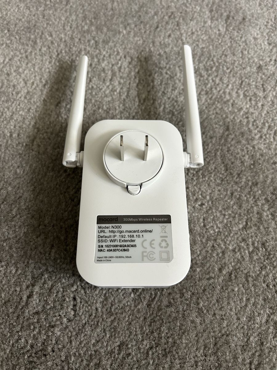 The Macard N300 is a 2.4 GHz, 300 Mbps wireless range extender designed to boost home Wi-Fi coverage and eliminate dead zones.