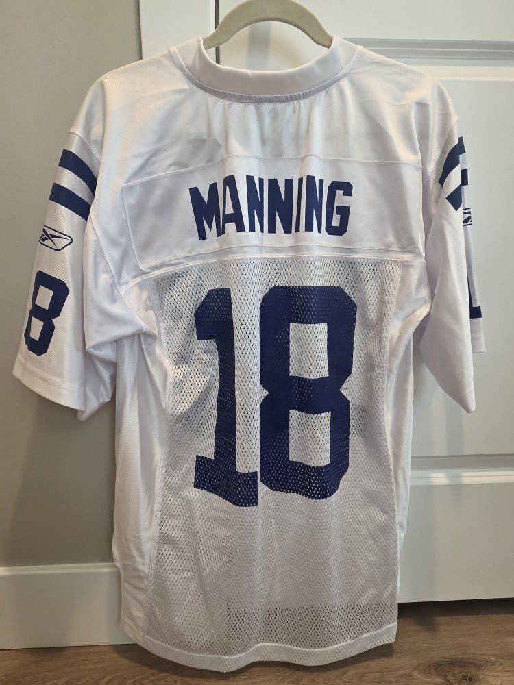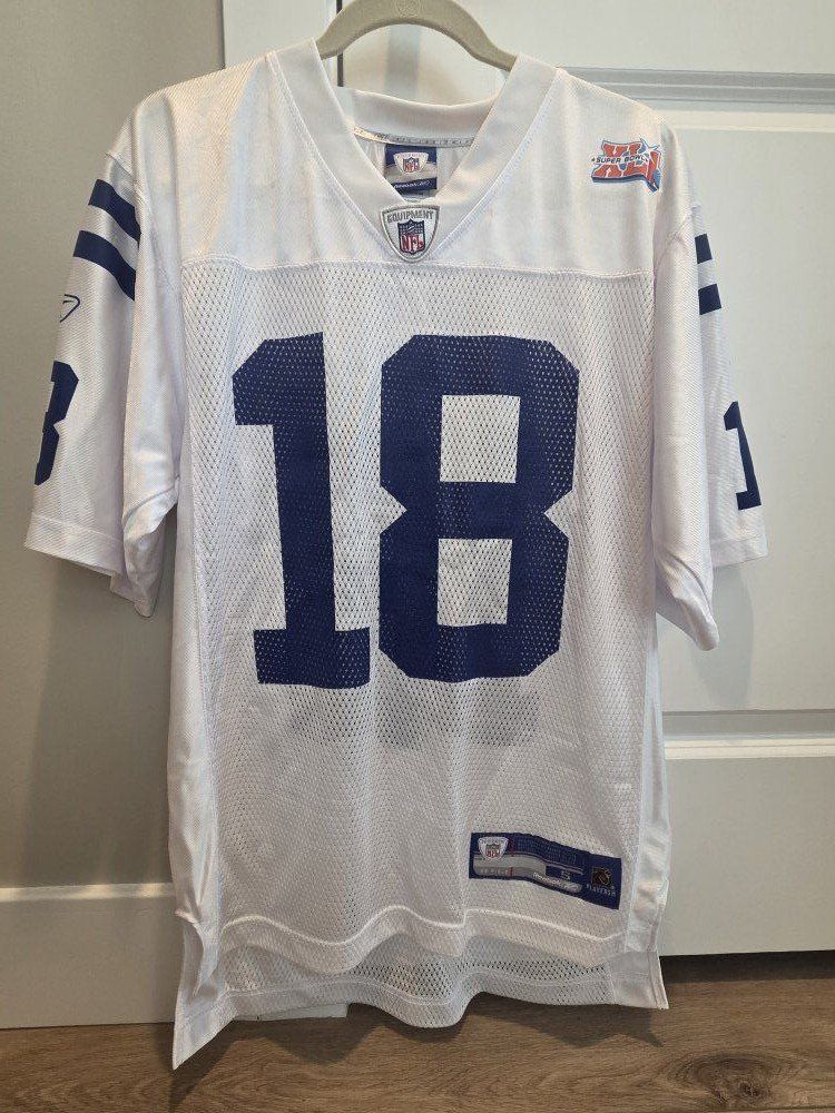 VenmoPeyton Manning Reebok NFL Jersey Indianapolis Colts with printed Super Bowl XLI logo Men's size small, great condition.