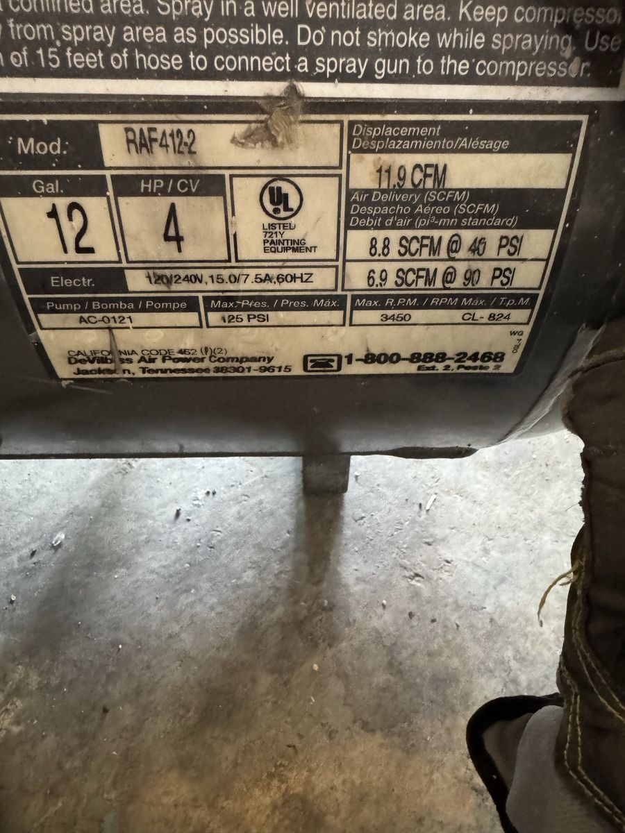 DeVilbiss Pro 4000 (4 HP, 12 Gallon) air compressor, oil free .