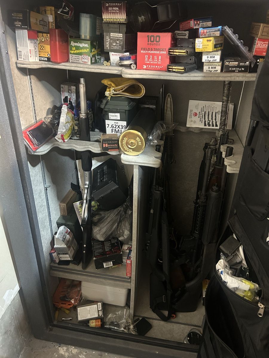 VenmoLiberty gun safe with 21 long guns spots 18 med gun spots shelves and some hand gun holsters you move it or have it moved no guns included.