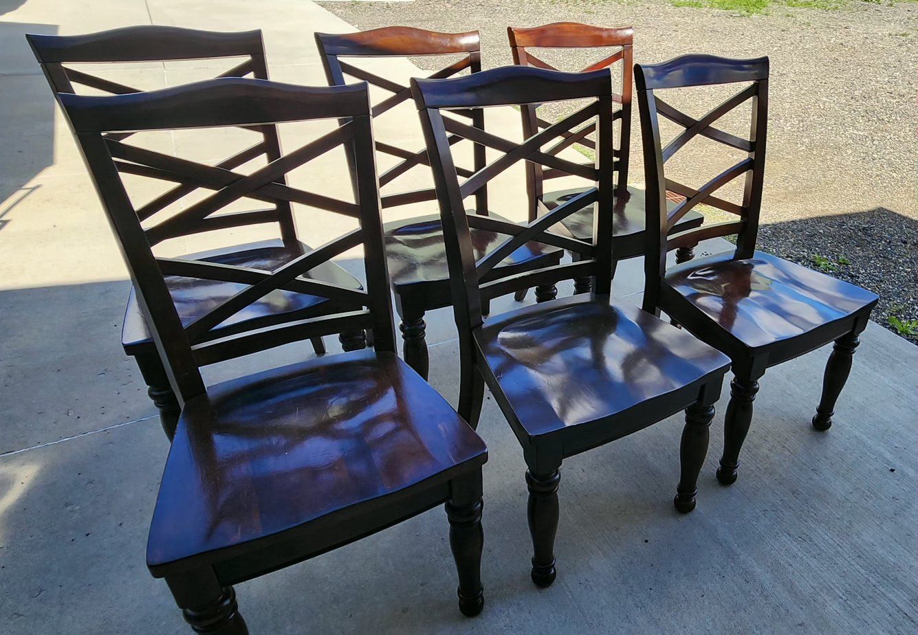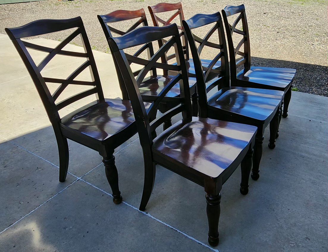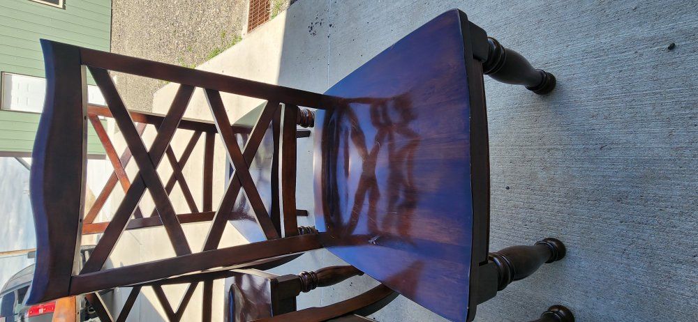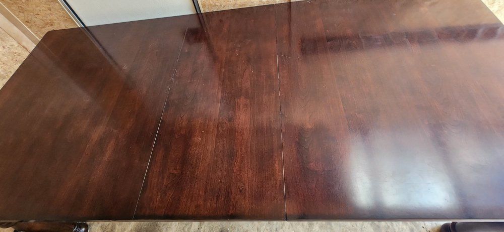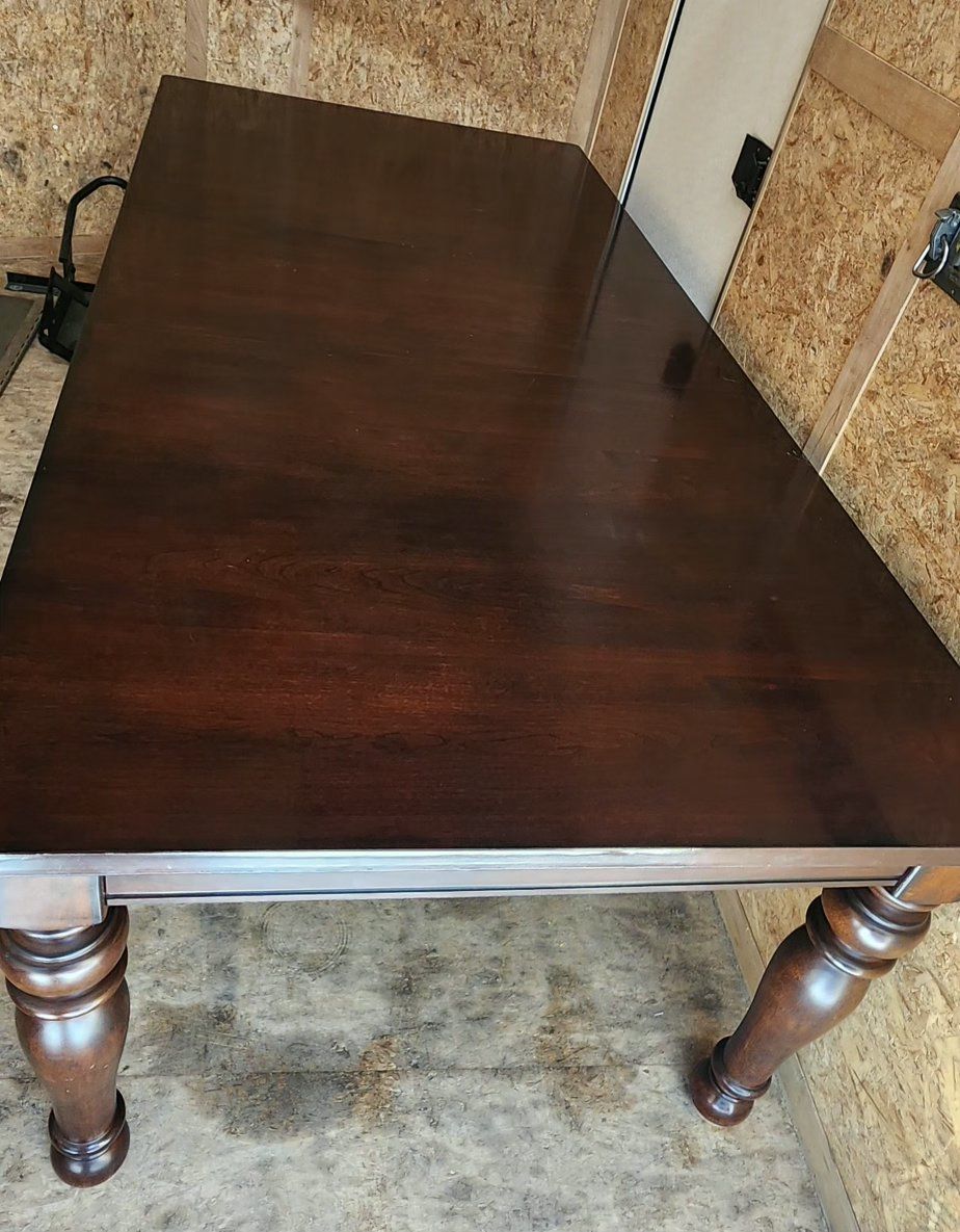 We are selling our 7 piece dining table. We purchased it from Ashley Furniture years ago and decided to get a table that fit the space better. This is a used table so it does have some scratches and dents but overall, it is in good condition and has been a great table.