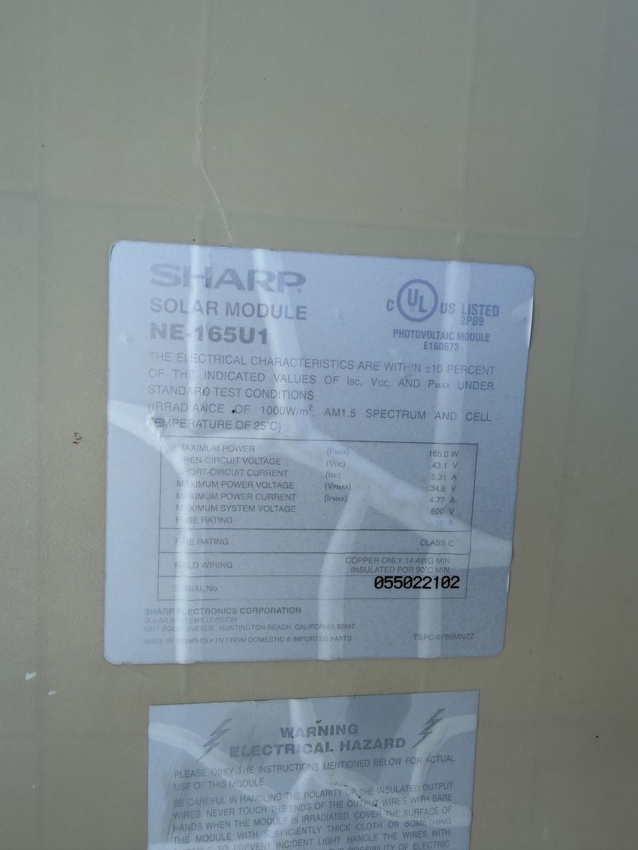VenmoUsed Sharp NE- 165U1 Commercial solar panels