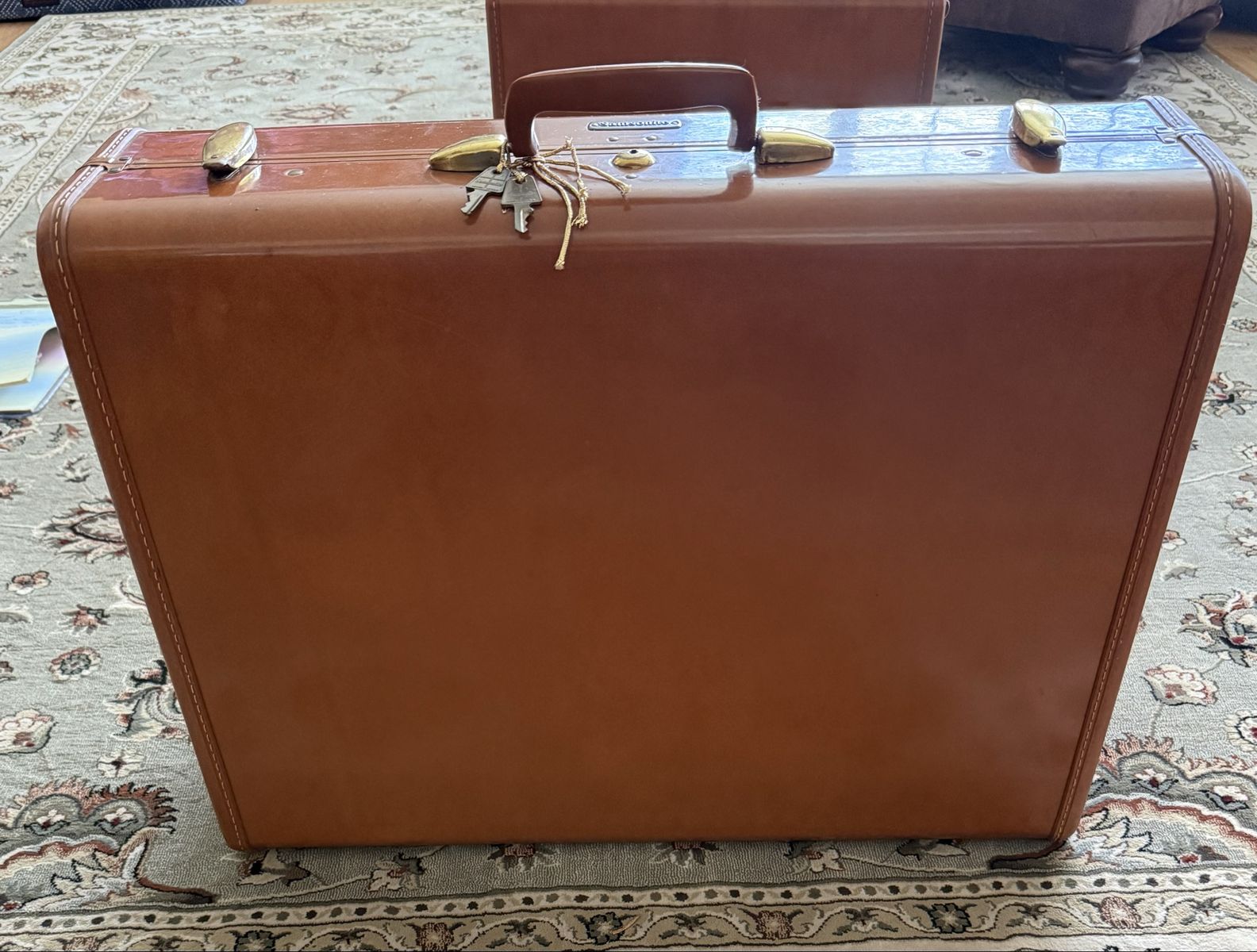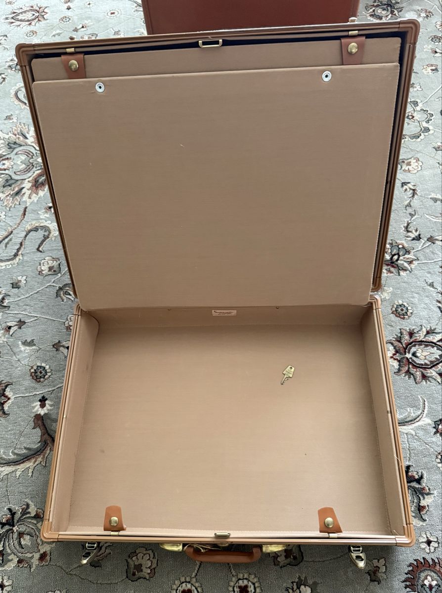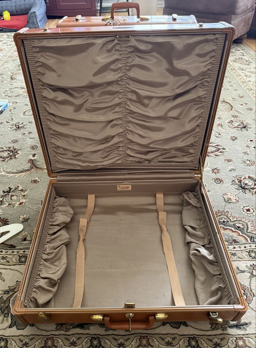 Vintage 1940’s - 1950’s 3 piece Samsonite Luggage Hard shell construction, with a rawhide effect finish, top handle, metallic latches, all 3 sets have their own keys. Pretty good condition considering their age. Dimension: Small: W 21”. H 13 1/4”