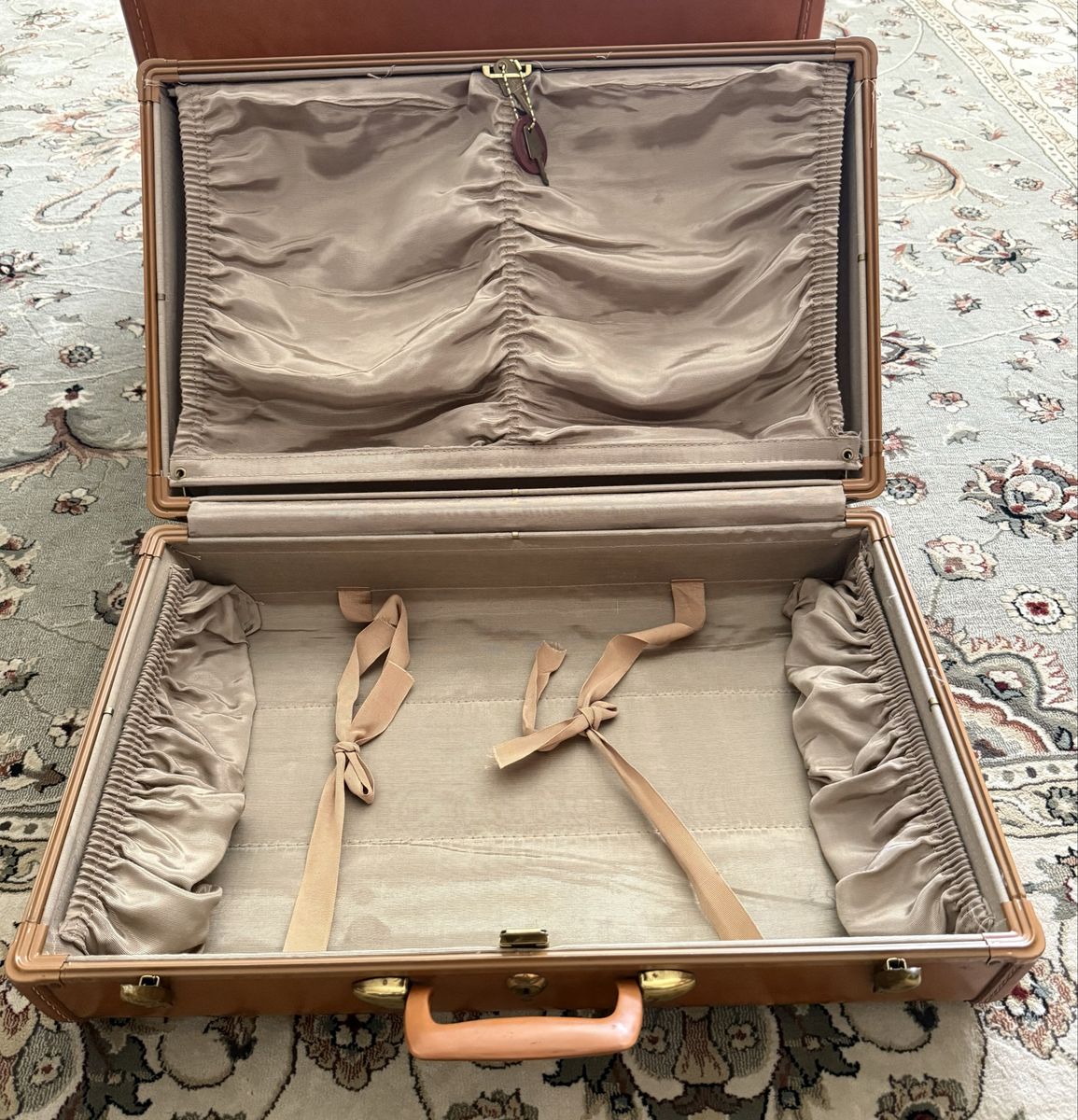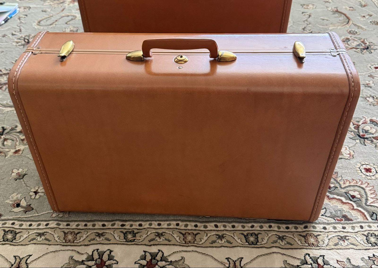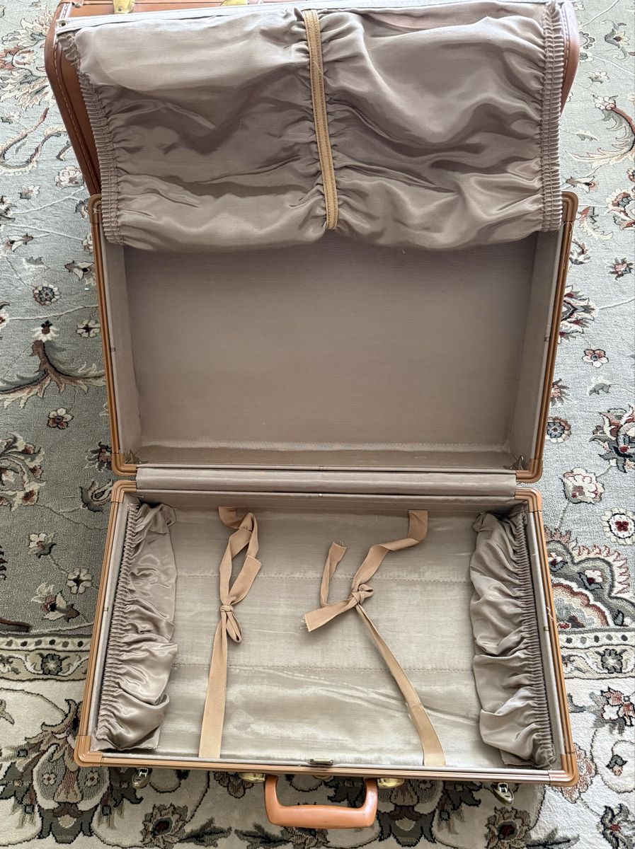 Vintage 1940’s - 1950’s 3 piece Samsonite Luggage Hard shell construction, with a rawhide effect finish, top handle, metallic latches, all 3 sets have their own keys. Pretty good condition considering their age. Dimension: Small: W 21”. H 13 1/4”