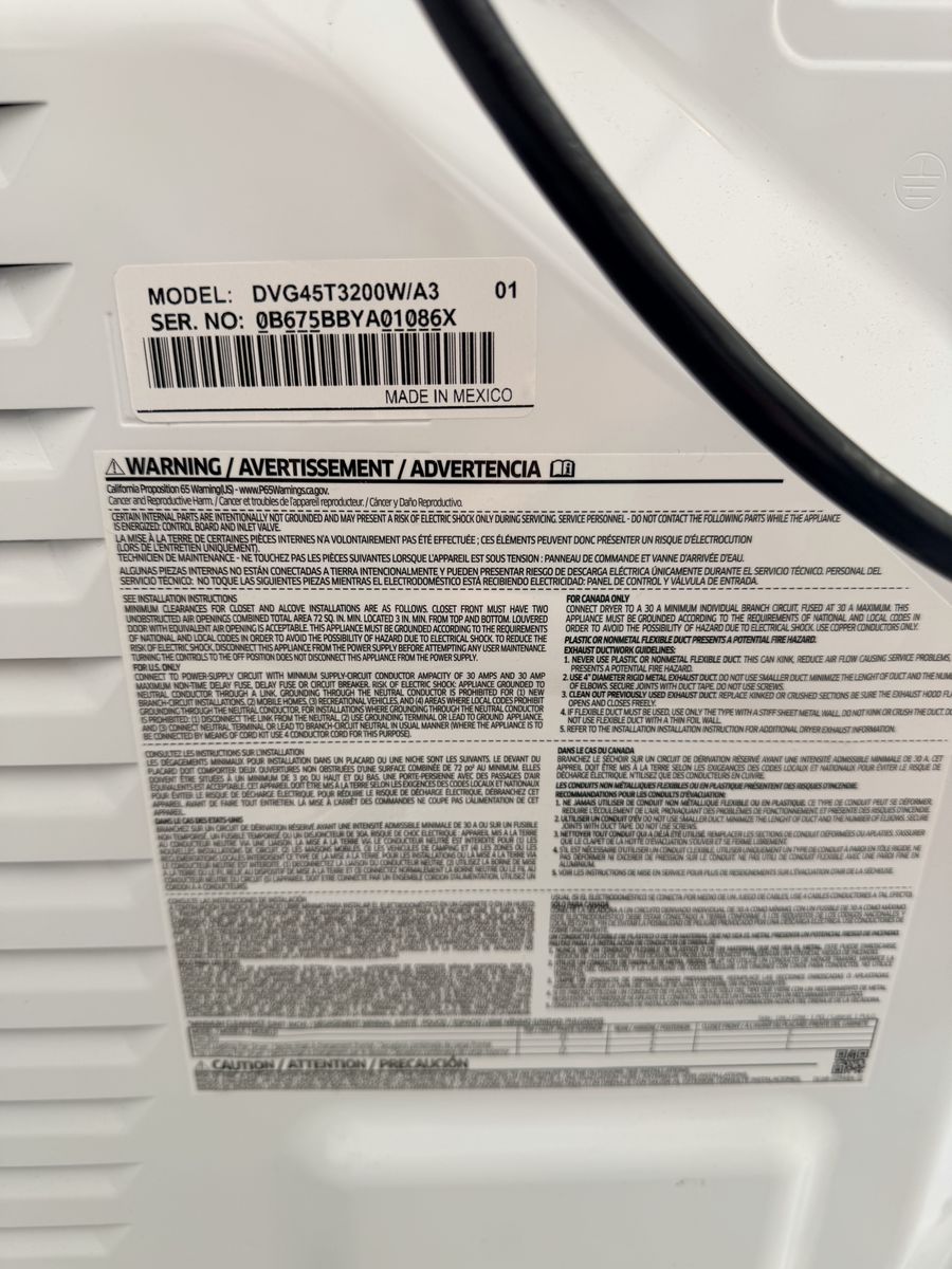 VenmoSamsung model DVG45T3200W/A3. Moisture sensor and smart care. 7.2 cubic feet. Gas. Less than 6 months old and used sparingly by a senior couple. Originally $950 - paid $750 - asking $400 obo. Located in northeast lehi.