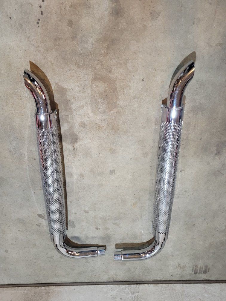 3" chrome side pipes or short stacks with straight pipes, never been used, $175 or best serious Cash offer.