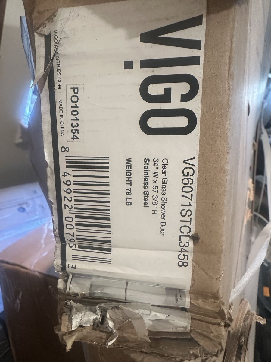 Clear Glass Shower Door 34" W x 57 3/8" H