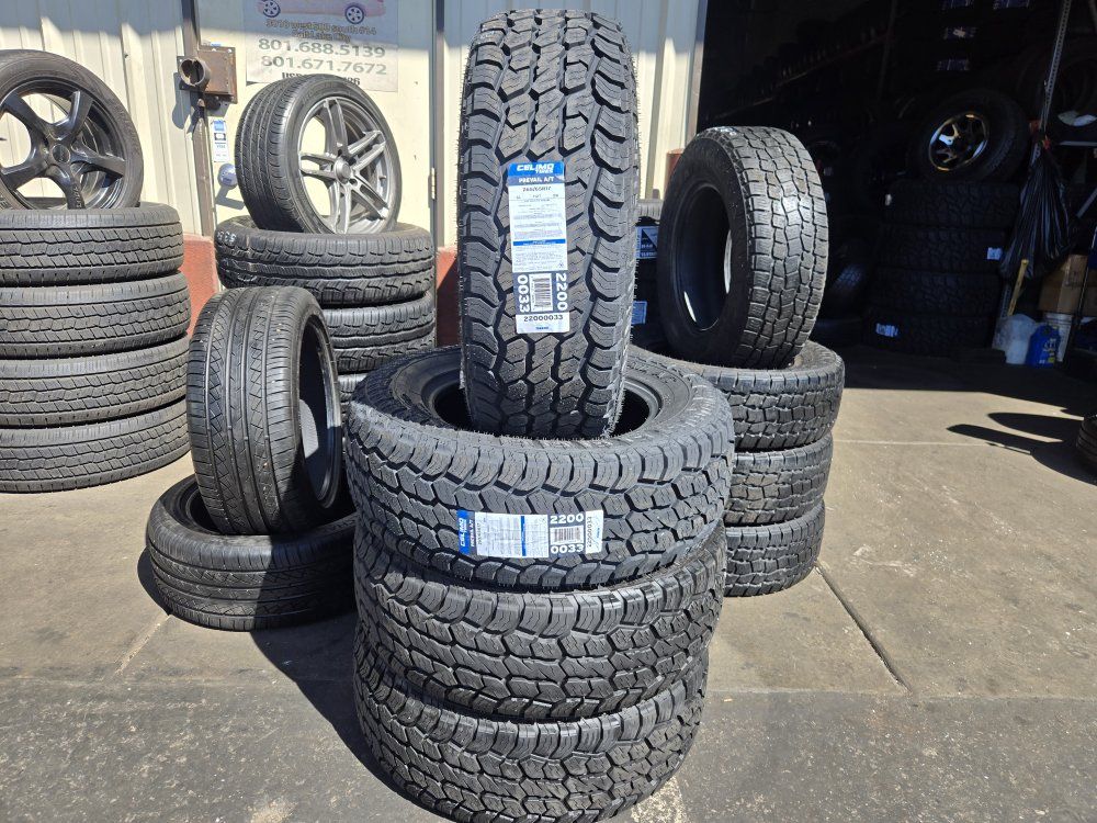 USED SET OF TIRES!! The brand is CELIMO PREVAIL A/T Size is 265/65R17 Free mount, balance, and brand new valve stems. Like new 95% tread left $450 for all 4 DOT 2025 $5 disposal fee per every old tire you leave for us to dispose of Also check out our GOOGLE reviews to assure you’re in good hands, just search (Oliver Tires) We also offer lots of other sizes new and used. Call or text for availability Espańol; 8016885139 Office: 8016620227 Or come visit us at 3010 west 500 south Salt Lake City Utah.